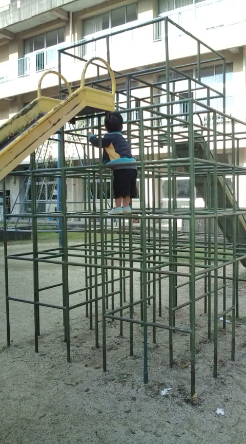 11月15日。あ、弟の誕生日だ!おめでとう!(笑)昨晩はなぜか二人とも夜泣きをして夜中にぎゃーぎゃー大暴れ。私は無視してたから別に睡眠不足にはならなかったけど(笑)二人はよく眠れなかったみたいで、早く寝たのに珍しく8時まで起きてきませんでした。なのでばたばたと見送り、帰宅。その後はおっぱいおっぱいとおっぱいばかり飲むぶどう君に散々おっぱいを飲ませて、後はのんびりパソコンタイム。お昼ご飯後は、ちょっと昨日足りなかった小学生セットの中身を買いたしにダイソーへいきお迎えに。ちょっと早く着いたので隣の小学校の遊具で遊んでたんだけどぶどう君が、ジャングルジムが階段代わりになってる、めちゃくちゃ高い滑り台をだいようう(大丈夫)、こあくない、と言いながらジャングルジムをグングン上り、すえりあい、ついたー!と滑り台から滑り降りたのにはびっくり!双子は、、、運動神経はよかったけど、怖がりだったから、この時期、三段以上のジャングルジムは絶対に上らなかったもんなあ。ママの方が怖くてドキドキでしたよ(^^;凄いほめたのでもう一度上ったぶどう君は、手に豆ができてました(笑)その後は今日は前々から約束していたお友達の家(火曜日しかダメ、と言われて、先週は病院だったので二週間越しで待ってた(笑))の家に二人が行ってしまったので、(と思ったら、今日もダメだったようで、結局いつもの友達の家に行ったらしい)、私はぶどう君とボールを持ってこの間の公園に行きました(^^今日は寒かったんだけどね。公園に到着したら奇声を上げて喜ぶぶどう君(^^最近サッカーをするのが好きなぶどう君なので、ゲートボール場でサッカーをしてあげたら大喜び!楽しくボールで遊びました。遊びながら、、、ああ、やっぱりこの子、運動不足よね、と実感(^^;これからは、園庭で遊ばないときはいつも遊びにつれて出てあげようと思ったのでした。それからもう一つ思ったのは、あれ?遊ぶのが楽しい。おかしいなあ、、、双子とはボール遊びって言われても何していいかわからなくて全然遊べなかったのに。。。なんだー?双子なら遊べてぶどう君とは遊べるの?一対二だからダメなのかしら???ボールけりをしてるうちに、ぶどう君が、ゲートボールのゴールがお家だ、と言いだしボールをけってお家の中を通すのに熱中し、散々走って遊んだあとは、シーソーしたり、滑り台したりしたあとは、葉っぱをちぎっておままごと。だったんだけど、風が強くて葉っぱを飛ばしてしまうので怒ったぶどう君。風さんが飛ばしたんだよーって言ったら、あれが風さん?って木がゆさゆさしてるのを指さすので、そうそう、って言ったところ、木に向かって、「まめえちょ!」「ばか!」「やめて!」って何度も叫びに行って、、、かわいい(笑)でもなかなか風がやまず、ママ行ってって言われてママもいいに行ったけどやまず(笑)風でトイレのドアが開いて音がしたのがきっかけに、怖くなってしまったぶどう君、おちまい、だって。じゃあ、もう一度ボールをけりながら帰ろう!ってボールを楽しく蹴り、車のところまで来たら、凄い嬉しそうな顔で「いっっぱいあそんだ!」だって(^^時間にして40分くらい。そのまままっすぐ家に帰ってきて荷物を片付けたらまだ4時でしたからね。これくらいで満足してくれるんならお安いご用よね!その後は急いで明日のご飯を作り(明日は、パン、タンドリーチキン、ジャガイモポタージュスープが代替え。チキンは、ネットで見たレシピで、マヨネーズとしょうゆ少々とカレー粉でもんでオーブンで焼くだけのやつをやってみたけど、おいしかった!)、その間、ごあん、とぶどう君はキッチンでもくもくとご飯を食べ、今日はお昼寝してないので、これはもう寝るな、、と思ったので急いで寝室を掃除して布団を敷いて寝かしつけました。4時半には寝ちゃったよ!その最中に何故か一人で帰ってきたりんご。どうしたの?喧嘩したの?って聞いたら、寒いから一人で帰ってきた、だって。その後一人で習字をして遊び、そこらじゅう墨で真っ黒にしたのでママに怒られて全部きれいに掃除して、と大忙しだったりんご。みかんもしばらくしたら帰ってきて何だか二人の感じがちょっと変なんですよね。ばあばも、何だかむしゃくしゃしてるみたいだけどなにかあったのかね、って言うからみかんにこっそり聞いてみたら、、、りんごと年中さんメンバー対年長さんメンバーでちょっと喧嘩になったら、りんごが、寒いからもう帰る!って帰ってきちゃったんだって。やっぱり喧嘩だったんだ(^^;それで一人で帰るあたりがさすが、自由人だよね(笑)やっとのことで掃除が終わり、夕食に。今日は給食の代替えの肉などの夕食。その最中あちこちぼりぼり掻いてるみかん。最近何だか次第に次第に肌が酷くなってきて顔ががさがさになって、体もあちこちかゆそうなみかんなんですが、今日はさらにひどい!うーん、やっぱり花粉なのかなあ、なんて話していて、、、マスクし