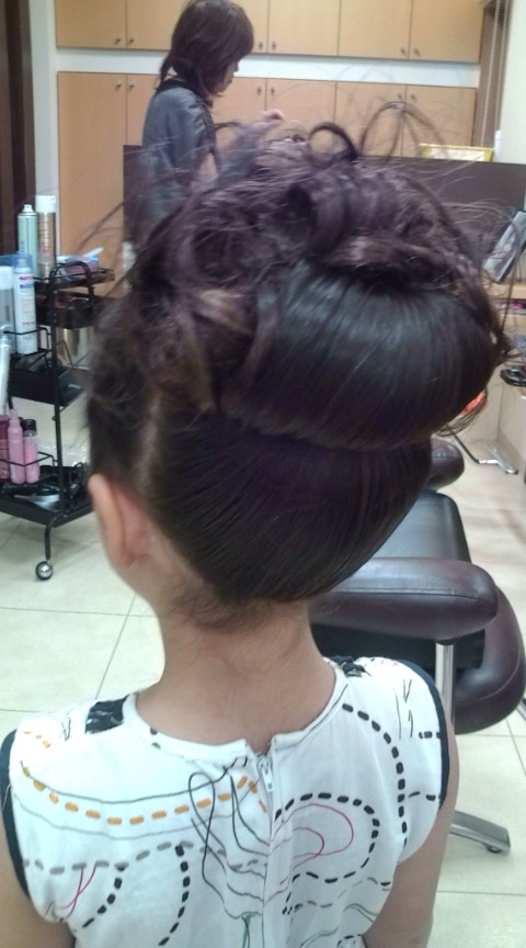 11月3日。昨日は、、、深夜4時ごろに一度目が覚めた子供たち。パパだー!!!と夜中に絶叫(笑)飛びつきました(^^;その声に目が覚めてみかん、ぶどう君と次々に飛びつき、深夜の感動の再会に(笑)朝は、明日パパと入ったら、と夜に風呂に入れなかったので(笑)大喜びで三人はパパとお風呂に入り、私は7時に起きて準備。朝ご飯には、、、昨日届いたパンを食べました。このパンの説明をしたいところだけど今日は長い一日なのでまた後日(笑)美味しくパンを食べ、私たち三人のお弁当と、ぶどう君のお弁当を作って今日はバレエの発表会!発表会、、、というか市の文化祭での披露です。30分かけて作ったシニヨン。結局色々購入したけど、まとめ髪用のスプレーで髪を濡らしてポニーテールを作り、三つ編みしてシニヨンつくり、最後に塗りつけるタイプの後れ毛処理のワックスを塗りたくり、きれいに出来上がりました♪10時に楽屋入りなので9時半過ぎにパパに車で送ってもらい、泣くぶどう君は車に置いたまま楽屋へ。早速衣装に着替えてリハーサルの時間を待ちました。舞台は、、、結構狭い、とのことだったんだけど、やっぱりちゃんとした舞台!威圧感あるわあ。。。まずは立ち位置の確認を何度も繰り返し、一度通すことに。本番はもしかしたら舞台から見られないかもしれないから、ビデオ撮るならここで、と言われて私たちは客席へ。でもリハーサルだと、先生の怒号が入りっぱなしなんだよね(笑)それでも全部の曲を、続けて撮るとみるのが大変なので一曲ずつに分けて撮影。もう11時半でリハーサル終わりの時間だから、子供たちを連れて楽屋へー、と会長さんに言われて袖へ行ったら、先生、もう一回通させてください!だって(笑)なのでもう一度戻って今度はミクシー用に、ハイライトシーンを30秒ごとに撮影(笑)12時近くにやっとリハーサルが終了しました。その後は、お姉さんたちは先にお化粧、小さい子たちは先に昼食、ということで皆でお弁当。って言うかお弁当はうちだけで、他の人はみんなコンビニのおにぎりだったけど(^^;今日は出演者には市からパンが二つと飲み物が配られると聞いていたんだけど貰ったものは、クリームパン、小倉あんパン、コーヒー牛乳(笑)こりゃ無理だわって手も付けずお弁当にしました。親はささっと食べて、私は粉つけ係だったので、子供たちは食べててもらってお姉さんたちのお化粧を観察。バレエのお化粧は凄く濃いんですよね。どんどん濃くなっていくお姉さんたちの顔(笑)そして次はキンダーさんの番。クレンジングローションで顔を拭き、その上からドーラン、ということだったので、クレンジングローションは事前にお借りして試してあったんだけどアルコールが入ってるんですよね。でもだいぶアルコールに強くなったみたいでつけっぱなしで半日過ごしてもかきむしるほど痒くはなかったんだけど、口の周りはちょっときついようだったので、口の周りは避け、、、そしてそのままドーランは怖かったのでいつも塗っても問題のない、UVローションを、特に口の周りに念入りに塗ってお化粧に入りました。ドーラン塗って、粉はたき、チーク、ノーズ(鼻を高くする)、アイシャドウ、アイライン、そして最後に口紅を塗ってお化粧終了!みんなお化粧が済み、バレエシューズを履いて、出番を待ちました。そして本番!子供たちを袖へ連れて行った後親たちは客席へ。なんと、超満員!立ち見まで出てる!入るのにお金かかるからそんなにいないかなって思ったけど、びっくり!何とか前の方の席が空いていたので皆で座りました。バレエの紹介と名前を言い始めたところでカメラをつけてみたら、、ぴーってでんちがなーい!!!!(笑)あのね、カメラの電池、凄く劣化して、1時間くらいしか持たなくなったので、この日のために二つ買ったんですよ。なのに、替えの電池を置いてきたから旦那さんに一応持ってきてって頼んであったんだけど旦那さんは一番後ろの真ん中に陣取っててとても取りに行けず。。。あーあ、携帯で撮るかあと悲しんでいたら、、、カメラ使わないのが或るから、使って!とバレエ仲間のお母さまが貸してくれました!!!!おかげで自分のもののようにばしばし撮影できましたよ(><)バレエの前はおばあちゃまが民謡を歌う演目だったので、バレエが始まったとたん華やぐ雰囲気。お客さんのほとんどがおばあちゃんなので、わあああ、、、かわいいいわねええ、、、、としばしざわめきました(笑)無事にオープニングが踊り終わり、暗転、次はキンダーさんの出番で、そのまま残るところなんですが、リハーサルではここでキンダーさん、最後まで、みんなと一緒に袖に入っちゃってたんですよね(笑)暗い中、わたわたしてる様子は見えたけど(笑)、何とか入らずに済んだ様子!オープニングの怪しげなのとは違い、こちらは散々練習した曲目なので問題なく進み、無事終了!最後の、わたし、おどりました、という挨拶をするところでは(踊りでね)またもや、