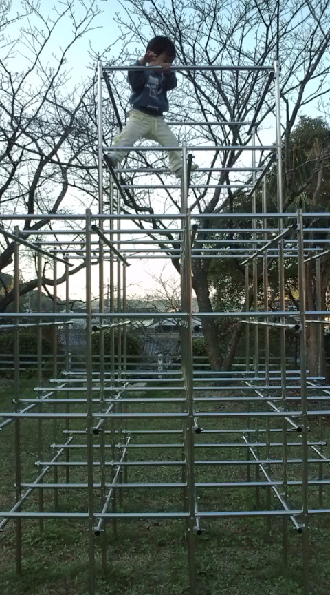 11月13日。昨晩はさすがに寝すぎて(笑)、腰が痛くて、、、朝はみんながバタ足で背中をけってくれました(^^そんな今日は特に何もすることがないので、一緒に遊ぶ約束をしていて、、、そのために昨日は週末のラジオをほとんど聞いておいたんですよね。で、朝ご飯には、この間ご紹介したトントンのパンを食べ、明日のご飯づくり。明日はなんと、初!二人とも給食を全部食べられる日!で、二人には大して喜びはないみたいだけど(それぞれ今迄に一人ずつだったらあったから)、何も持たせないでいいという喜ばしい日は私にとっては初なので、私には超嬉しい日!そんな明日の給食は、あんこうのから揚げ、高野豆腐と小松菜の煮びたし、寄せ鍋風スープ、みかん、ごはん、だって。美味しそう(^^じゃあ明日の夕飯は何にしようって思ったら、みかんが、私が考えて作る!というのでお願いすることに。メインは、、、ハンバーグ!それとシジミの味噌汁に、キャベツときゅうりの漬物、茹でたサトイモ、それとたくあん、と決まり、、、料理開始!ぶどう君はキャベツを切り、みかんはきゅうりをスライサーでスライスし、りんごは、私がみじん切りした玉ねぎを炒め、肉と混ぜ、その合間にサトイモを茹で、、、あっという間に出来上がり!混ぜた肉をまとめるのが楽しくなった二人は、それからえんえん肉団子で遊んでいたのでその間に洗濯をしたり、掃除をしたりして、料理がおしまいに。その後はみんなで洗濯をやり、じゃ、家事終了!ということで約束通り折り紙と切り紙をしました。散々切り紙をし、ぶどう君には折り紙のアンパンマンを作ったり、自動車の切り紙をし2人には最後には、折り紙人形とそのお洋服を作ってあげて、、、結局1時過ぎまでずーっとやりましたよ(^^昼食はカレーで、食べた後は、今度は公園に行きたい、とりんご。じゃあ、久々に自転車で出かけよう!ということで皆で自転車に乗って公園へ。どうも、歩いて10分ほどのところに町内の公園があるらしいと前から義母と言っていたのですが車でさーっととおるとどうも見つけられないでいたので、まずはそちらへ。川沿いの、、、えー、こんなところに公園が本当にあるのかなあ?って思うところにあったあった、公園!ただっぴろい敷地に、ゲートボールの広場と、滑り台、ブランコ、そしてシーソーがありました。双子はブランコに夢中、ぶどう君は全ての遊具に夢中で走り回り、草を摘んで喜び、、、それはそれはうれしそう(^^考えてみれば、、、ぶどう君って週に一度保育園で遊ぶ以外、ほとんど外遊びしてないもんね(^^;庭で遊ぶだけ。。。双子はこの時期、6時まで外で遊んでたのに、かわいそうだよね(笑)ママは最近時間があれば勉強しちゃうからなあ。なんて反省しつつしばらく遊び、じゃあ次の公園に行こう!ということに(笑)次の公園はそこからだいぶだいぶ坂を登り、下り、、、この間バレエの発表会をした会場の近く。道からはどこにあるのかわからなかったので、人に聞いたら(人なんてめったに歩いてないからね。偶然お墓にいたのでよかったわ)、隣の道の坂を登ると或る、とのこと。隣の道の坂、、、超急!自転車の三人は必死の思いで登りましたよ(^^;やっと上った公園は、、、さっきのより更に広い公園だったけど、唯一の遊具に、立ち入り禁止のテープが貼ってある(笑)ま、これならいいだろう、ってことで、ターザンみたいにがらがらーっと縄が走るやつありますよね、あれを皆でしばし楽しみ、馬に乗る遊具みたいなのはあったのでそれを少し楽しみ、バッタを見つけたので捕獲して、じゃあ次へ行こう、ということに。苦しみつつ上った坂をさーっと下り、そこからさらに坂を下り、到着したのは前々から行ってみたいと言っていた公園。行ってみると、、、先ほどの公園よりも更に広い公園だったけど、、、やっぱり遊具には立ち入り禁止のテープが(笑)こちらにもターザンの縄があって、、、でも二人には届かないんですよね。私はお尻を持ち上げて乗せてあげてたんだけど、、途中からやってきた二人の姉妹は2人だけで登ってるんですよね。どうも、保育園児のような感じがするんだけど、、、一体どうやってやってるの?って思ってみたら、台の後ろにある柱のところによじ登りそこから飛びついてターザンをし、縄を引っ張ってきて台に上がるのがうちの子はとても届かなくて無理だったんだけど、その二人はなんと、届くところまでやってきたら縄にぶら下がって、台に足でしがみつき、足だけでよじ登って台へ上がったんですよ!意味わからないかな。。。ああ、写真を撮ってくればよかった(笑)凄いな、ワイルドだな!とびっくりするほどの手際でね。。。あんな風にすれば出来るんだよ、やってごらんって二人に何度かやらせてみたんだけど(笑)二人は怖い怖いとへっぴり腰になって、うまくできないうちに縄が動きだし、転んで手足をすりむいちゃった(^^;しばらく遊んだけど、もう疲れた、けがだらけ(みかん