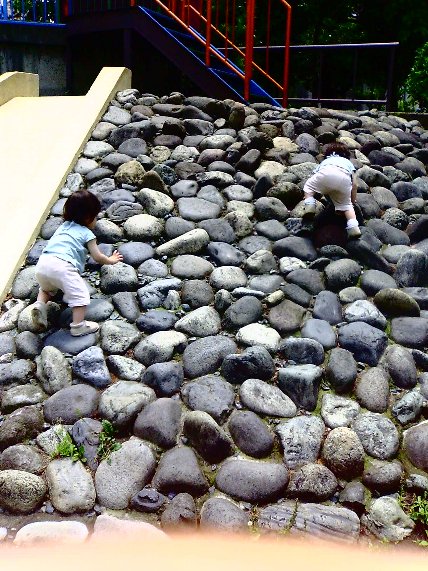 左側の滑り台で降りるのが楽しかったらしく、何度も何度も