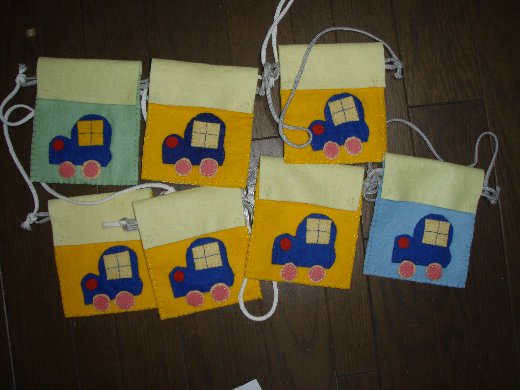 実はこの日のためにフェルトで全員分の車の柄のバックを手作りしたんです。