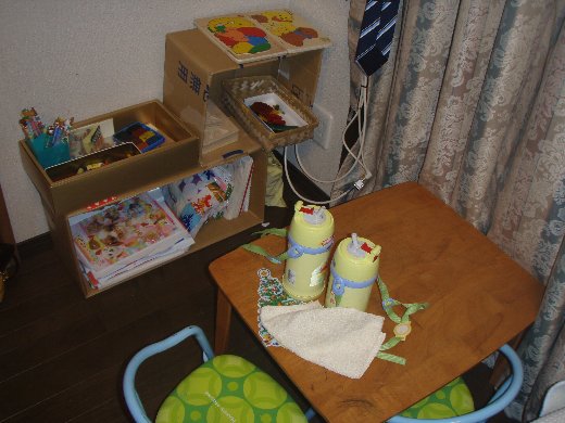 ダンボールにも素敵な紙を貼ってもいいし、、素敵な子供コーナーに