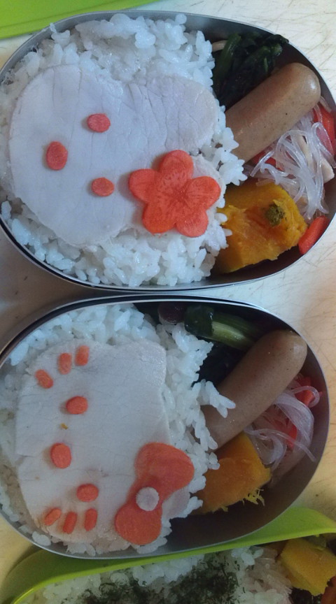 キティー弁当、ウサギ弁当完成!超簡単♪