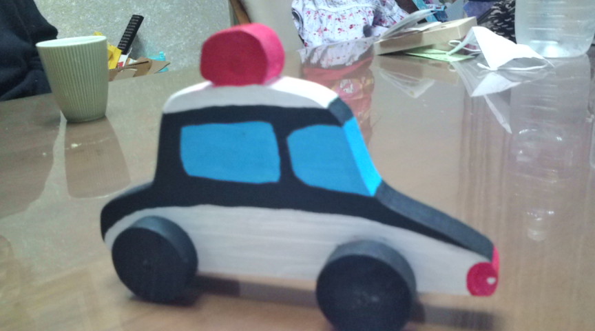 私とみかんは同じころに色付けを終わり、ニスを塗ってもらっ