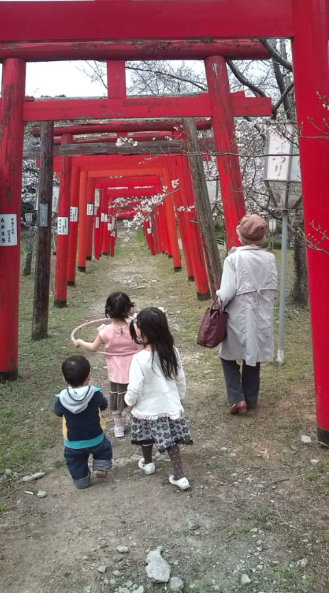 マイミクさんに是非行ってみて欲しいと言われた赤い鳥居と桜の神社、