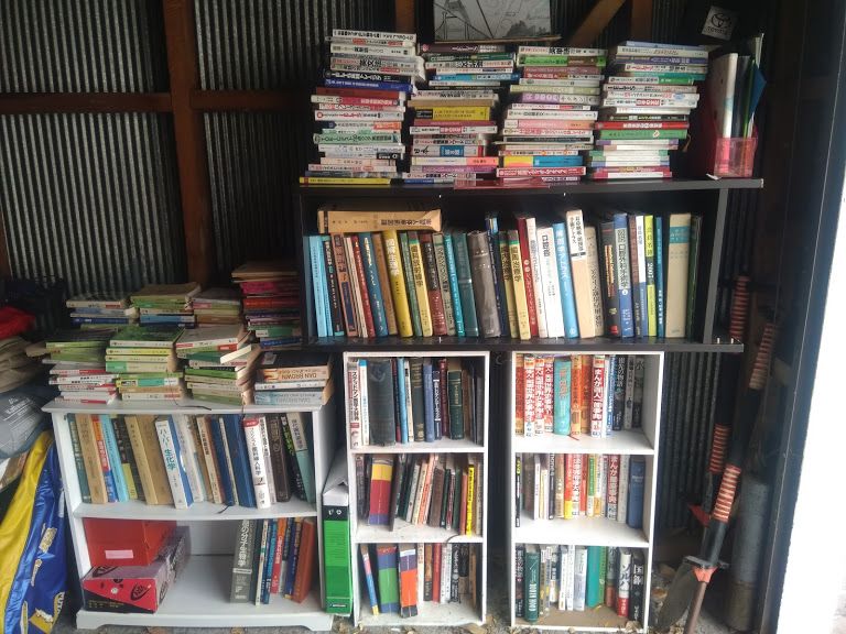 大人の本たちをガレージにきれいに並べて、そこには普段使ってなくて