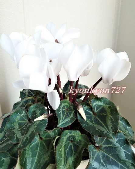 真っ白なシクラメンも、蕾がどんどん上がり始めました。