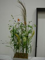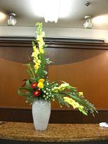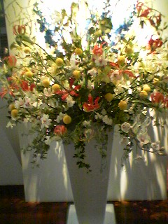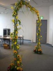 今日はいつも習っている、アカデミーの卒業生の作品展であった。私たちは、会場のディスプレイをさせて頂いた。それが、下写真のひまわりのアーチです。みなさん素敵な作品ばかりで、私たちも来年このような作品展ができるのかとっても不安になりました。その作品展の帰りに、いけばな展をしていたので立ち寄った作品は、また少し和の臭いがして趣があった。アーチといけばな展 素敵な作品ばかりですので、UPしますので、ご覧下さい。
