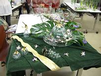振り返ってみると・・・ まあ、長い間更新もせず何をやっていたのか!とお叱りをうけそうですが、順に報告して参りますので、お許しを(-人-)7月には、年末にも報告した以前一緒に働いていた友人のライブそして、年一回の楽しみのユーミンのコンサート・・・もちろんシャングリラですほんま、よかった・・・しかし水面が急に消えてしまうのには本当に不思議でした。もちろん、お花のお稽古も続けていましたよ。上記は、インテリアコーディネートの講義で、自分のイメージする部屋へ飾るアレンジを考えて作成したものです。