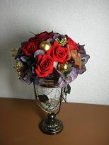 ビクトリアローズ 花材 バラ(ローテローゼ) 資材 ワイヤー#30、28 フローラルテープ 一見、一輪のバラのように見えますが、5輪のバラを分解して花びらをワイヤリングして一輪の大きなバラに組んだものです。直径15cmくらいあります。こうして作る大輪のバラをビクトリア女王がパーティーのときウエストに飾られたことから、ビクトリアローズと呼ばれるようになりました。先日、お仕事で大変お世話になっていた方が、辞められたので心をこめてアレンジしました。いつも、心配りの素敵な元気な方なのでビタミンカラーでアレンジしてみました。教室の片隅では、早くもクリスマスの装いでした♪ クリスマスプレゼント、飾り付けにおすすめ! キャンドルに火を灯せばまさに聖夜:キャンドル付きアレンジゴスペル【真っ赤なリース プリザーブドフラワーで】【送料無料】フライングサンタ(L)クリスマスイルミネーション衝撃の特大セール対象品【クリスマス・イルミネーション】スノードーム スノーマン...>> 楽天市場クリスマス特集へ