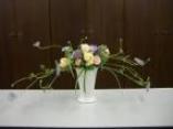 今日のアレンジには悩んで、困って時間がかかってしまった。出来上がりを見ると、なんとなくバラバラに入れているようですが、それが、立体的に、交差させて、器全体を使用し、交差してできた空間も美しく・・・なんてポイントをおかれると、どうしようか手が止まってしまった。でも、先生のアドバイスによりなんとか出来上がりました。ナチュラル 交差するアレンジ