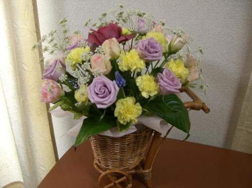 ご心配おかけしましてすみませんm(。-_-。)m火曜日からゆっくりしていると日に日に風邪もよくなりました。昨日は天気も良く、近くにホームセンターがオープンしたものですから自転車で、前と後ろのかごいっぱいにして買い物してきました。お花のお稽古は、フリーアレンジで皆さん実力をつけて素敵なアレンジができているのに私一人なあ~んかさえない来週で今回のステップが終了するが、私はひとり実力がついてないようで不安フリースタイル