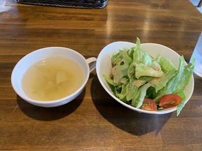 ランチタイムはサラダやライス、スープがセットになるそうです。