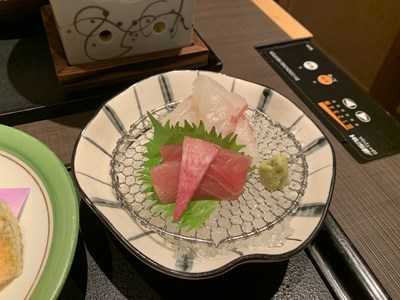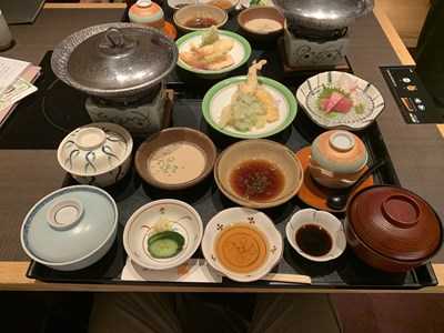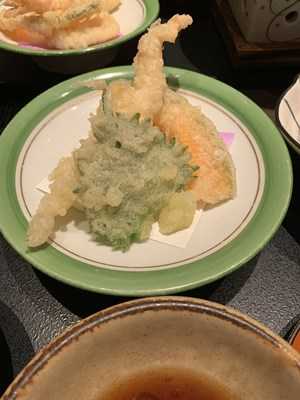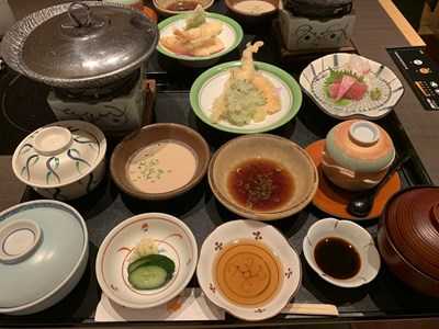 天ぷら、お刺身、茶碗蒸し、漬物など