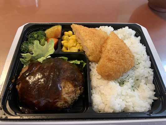 攻めている弁当があったので、私はこちらに「二層仕立てのハンバーグ弁当」税別550円にしてみます。