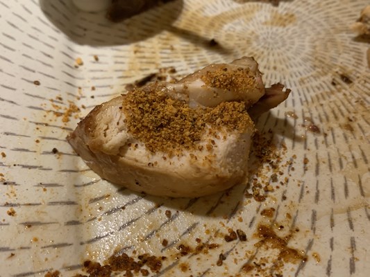 明石シェフに海老料理のおすすめを効くと、海老と原木椎茸の豆豉炒めがおすすめということで注文します。