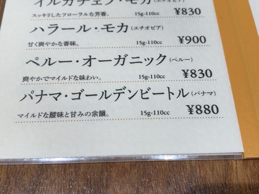 今日はペルー・オーガニック830円を注文します。