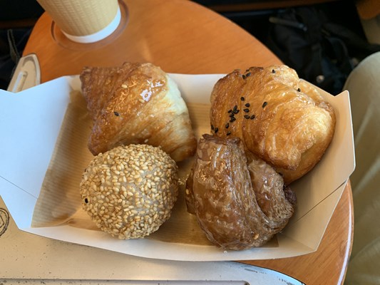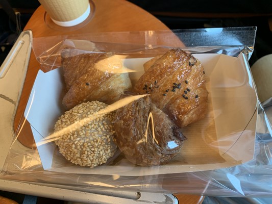 ミニクロワッサンのお店で、基本量り売りのようですが、朝なので詰め合わせたあり、試食にはちょうど良いと思い350円セットを購入します。