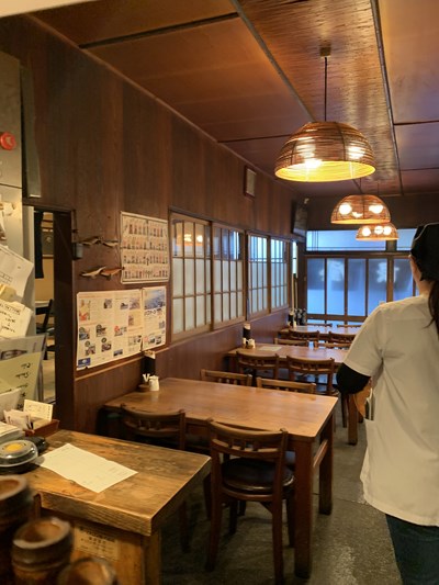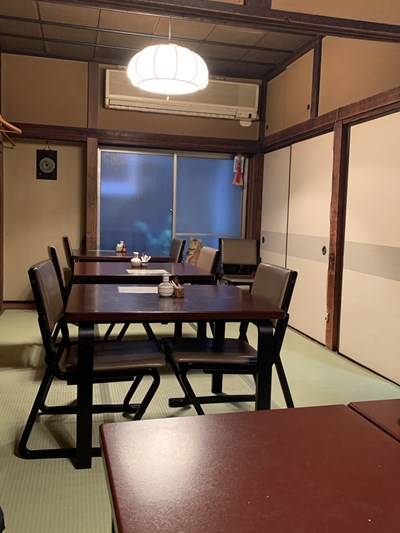 割烹着の仲居さんに奥のテーブル席に案内されました。