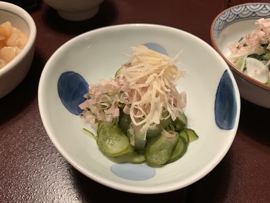 胡瓜の古漬けは昔ながらで、衣かつぎの里芋はボリューム満点です。