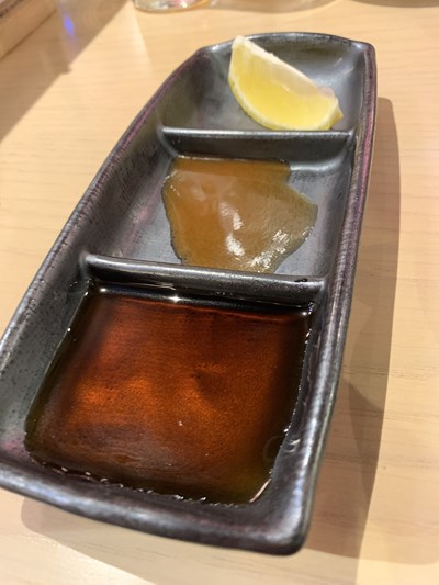 そのままでいけるそうですが、ポン酢、タバスコ、レモンの絞り汁でいただきます。
