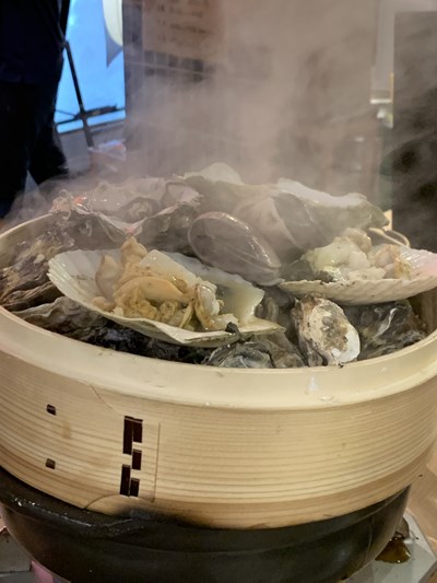 まずはヴァージョン1。牡蠣の蒸し鍋です。
