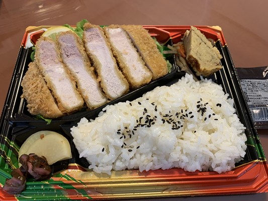 「スーパー三和」の「三元豚ロースとんかつ弁当」本体価格498円を試食します。