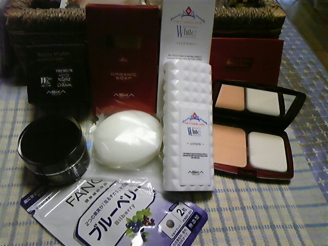 というわけで今日は昼からお買いもの。3連休の初日ということもあって人が多いのなんの。突然の雨もあって蒸し暑いし。さて、今回買ったのはこちら~。アスカ エーゼイン ノブ プレミアムオーガニックソープアスカ フツールビオ スイッツランド ホワイトローションアスカ エッセンスパウダーヨーロッパ ライトファンケル ブルーベリーでした。黒い容器にはいっているクリームは5000円以上買った人へのプレゼントなので、ただ。あと、先着100名にスキンケアサンプルもあり、それは写真に入りきらなかったので。。。オープン記念♪まずは100円で実感★327種の天然エキスで理想肌へ☆アスカのお試し約10日間セッ...価格:100円(税込、送料込)これと同じセットでした。お試しにはちょうどいいサンプルですね。石鹸は4200円が1680円、ファンデは4725円が2780円というお試し価格になっており、お得に買いものできたかも^^さっそく今夜から使ってみたいと思います~。ではまた(^O^)/