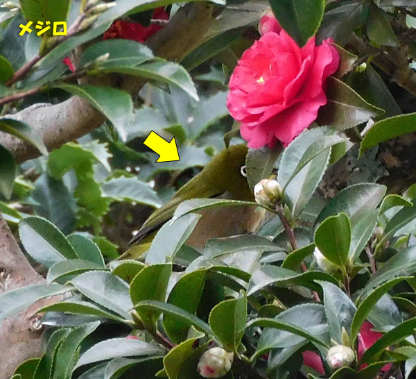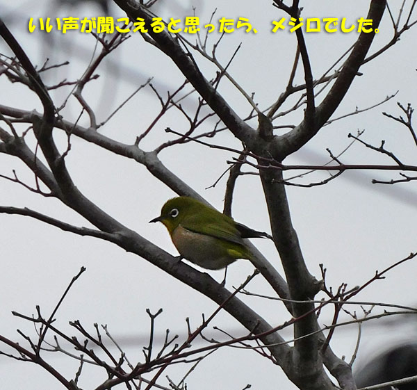 急に、えらく元気のいい、さえずりが聞こえてきたので、お隣の庭を見たら、