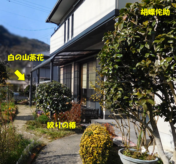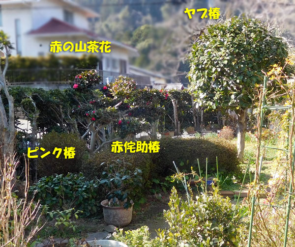 とにかく、この椿と山茶花は、 門から入ってきて、よく見える場所に