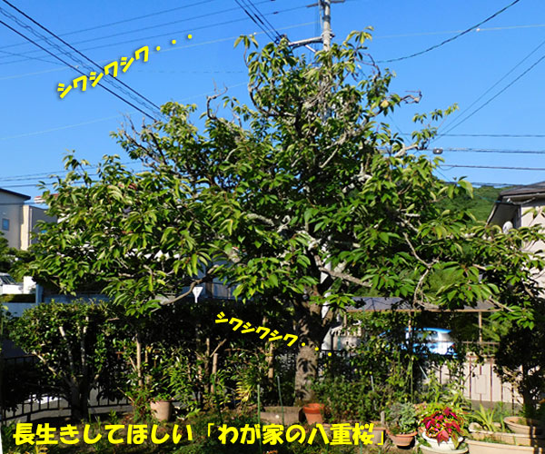 これは、庭の西南で、大きな木陰を作ってくれている 「八重桜」