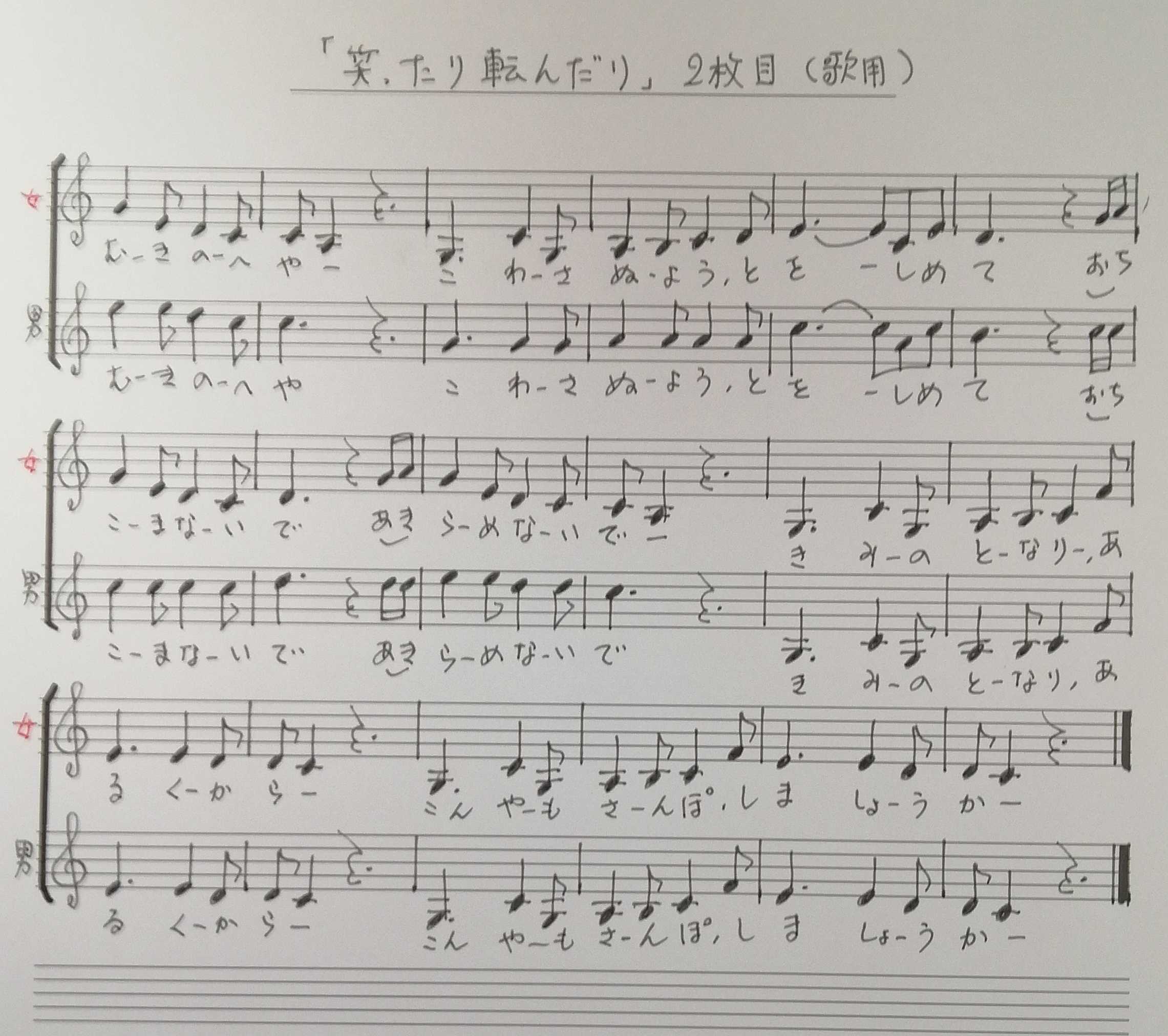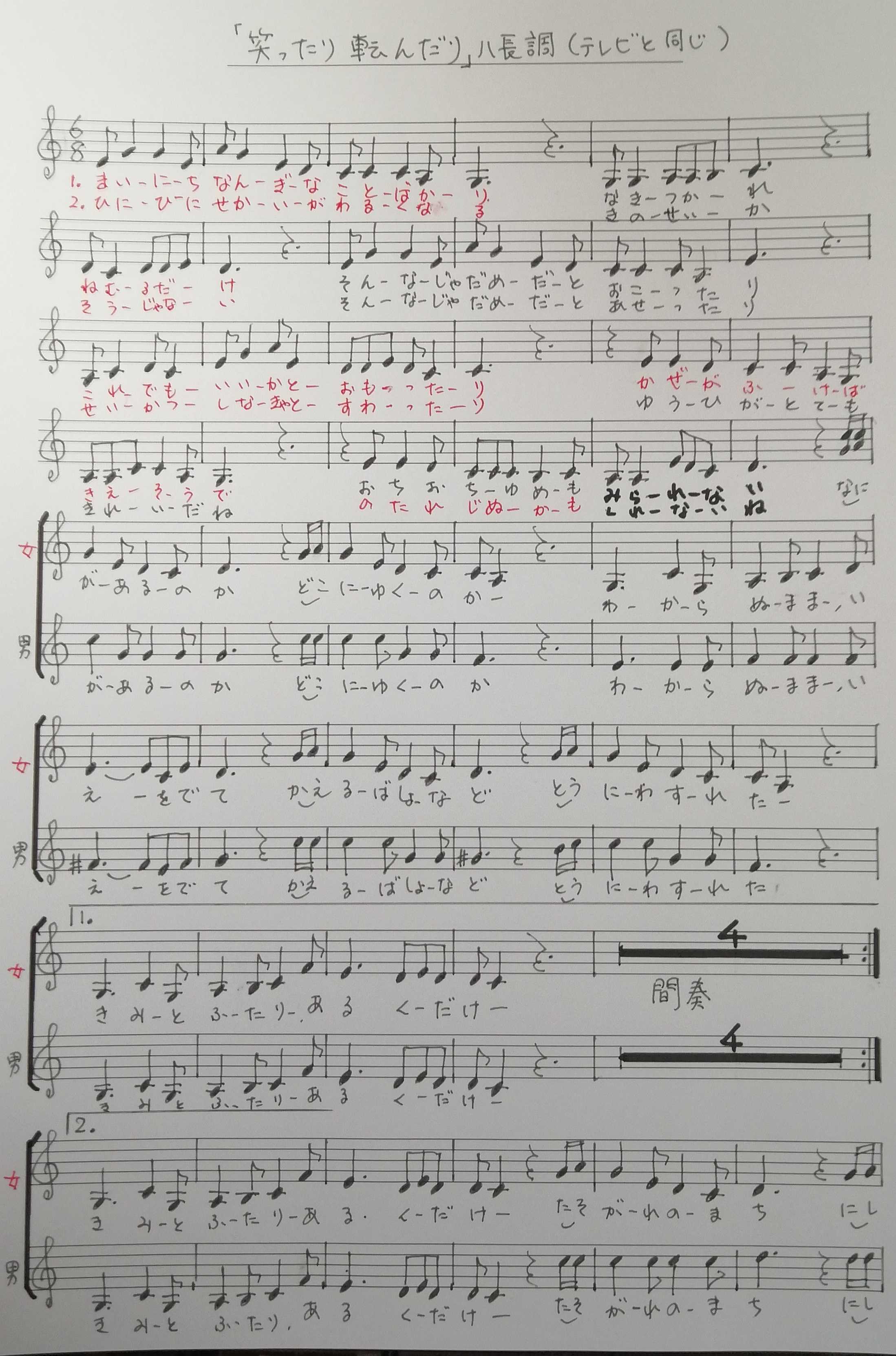 では、テレビの歌の通りに書き取った「ばけばけ」の楽譜です。