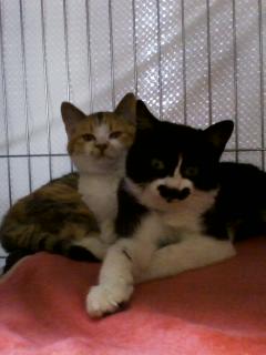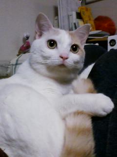 我が家はネコを飼っていますみんなノラネコ出身の子ばかりです。先日2匹の新入りさんが加入し、いよいよネコ屋敷と化してまいりましたまずは うめ という名前のネコのご紹介この子は昨年の11月12日、我が家の台所のお勝手口にお隣のお寺の飼猫「茶太郎」に連れられて一緒にちんまり座っていました。夫によると前日から2匹で庭で遊んで居るとのことでした。チビネコは目ヤニが出て目がふさがり、ハナミズも出て、両前足がハゲてました(ハナミズを拭きすぎてハゲたらしい)一見して病気とわかり、あまりにひどい状態の子だったので、一瞬見なかったことにしようと思いましたが・・・・茶太郎がお勝手口をカリカリひっかいて「お家に入れてぇ~」とせがむんです。いままでそんなことしたことないのに、彼が尋常じゃない様子でずっとガラス戸をカリカリ引っ掻いているので、「この子の面倒見てあげて」といわれているような気がして、病院に連れて行く決心をしました病院で見てもらうと、体重500グラムの女の子で、ひどい猫風邪を引いているといわれました。実はそのときウチには先住猫が居たので体調が良くなるまで入院させてもらうことにしたのですが、何日たっても自分からご飯を食べず、強制給餌でミルクを飲ませてもらっても自力で食べなければ身にならないとのことで、どんどん衰弱して体重350グラムまで減ってしまいました。先生にこのままご飯を食べないと最悪死んでしまうかも知れませんと言われて、自分も覚悟していたのですが・・・入院2週間目に病院から「急にご飯を食べだして元気が出てきたからもう大丈夫ですよ」と連絡がありました。病院に引き取りに行くと、「同じ時期に同じ病状の仔猫を預かっていて、この子が急にご飯を食べだした日にもう一匹の子は死んでしまったんですよ。三途の川に足突っ込んだけど帰ってきたねぇ。この子の持ってる生命力のおかげだね」と先生に言われました。退院して自宅に連れて帰り、缶詰のご飯をあげたら、モリモリ食べるのでもうビックリアンタ死にかけとったんやないんかーいっとツッコミ入れたくなるほど。しかも食べ過ぎておなかを壊すというオチつき写真は奇跡のワンショット 生後半年くらい。ぷりちーなお顔で写っています