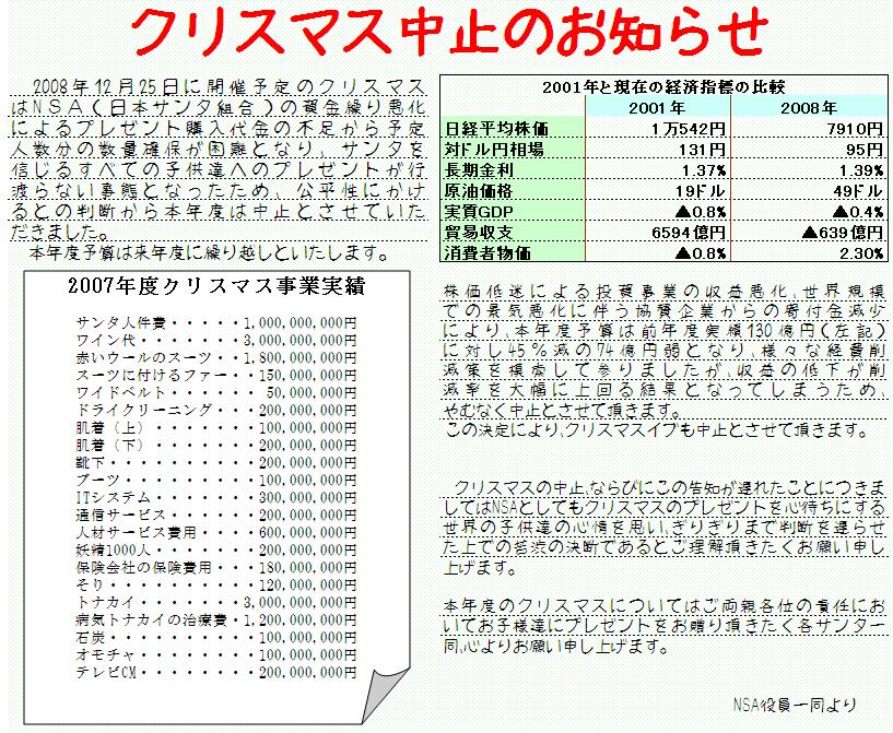 今年もクリスマスシーズンがやってきましたが世界的金融危機によりクリスマスが中止となりました毎年クリスマスは楽しみにしてきましたがYURLUNGGURとしても今年度のクリスマス中止は非常に残念に思います