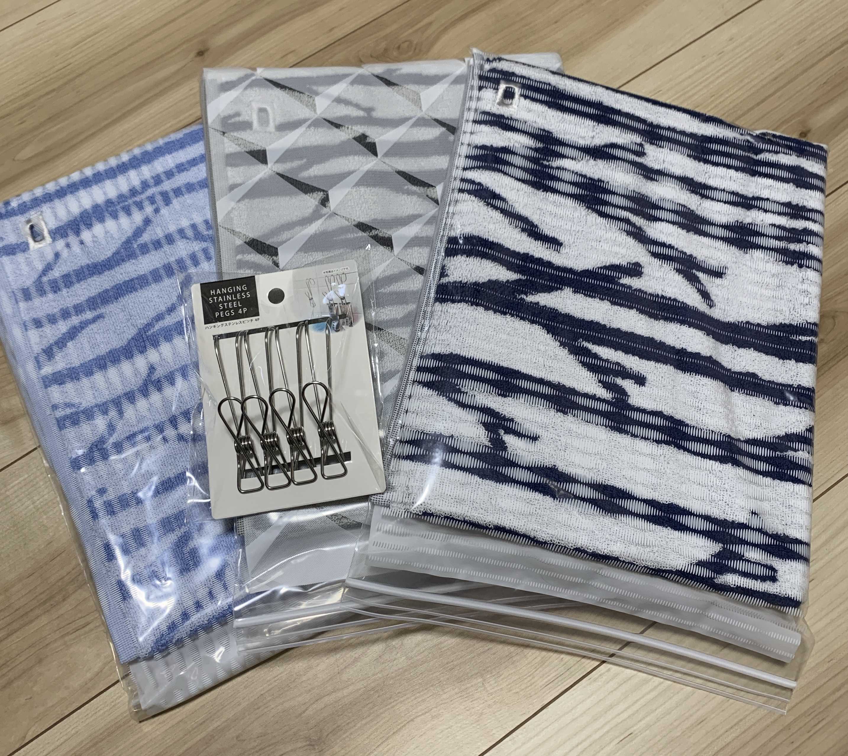 100均で無印ぽいピンチを買ってきて、これに引っ掛けておきます。タオル素材なのでそのまま乾燥機もOKかな?