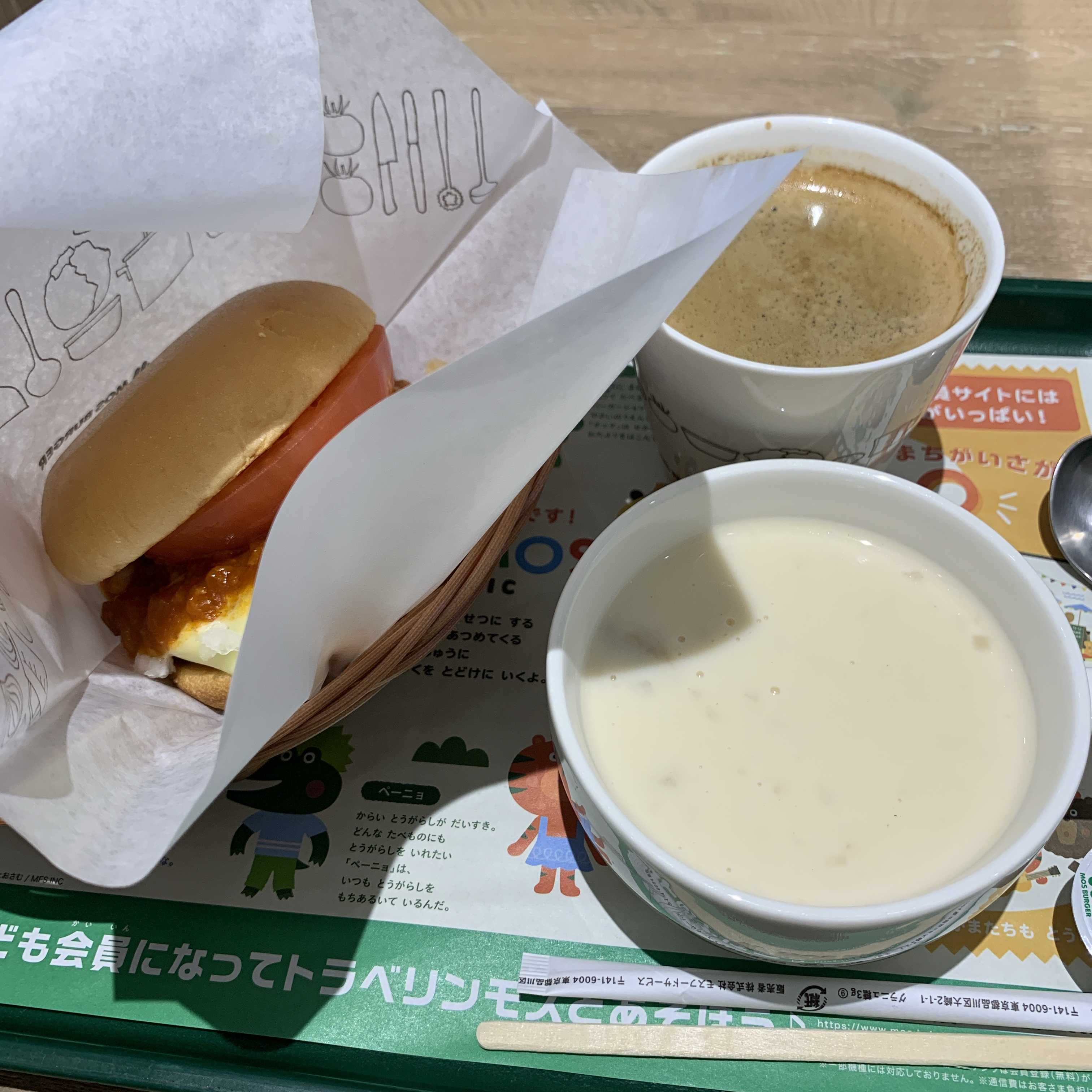 あまり行かないけど、いつもモスチーズバーガー。寒かったのでクラムチャウダーも一緒に。