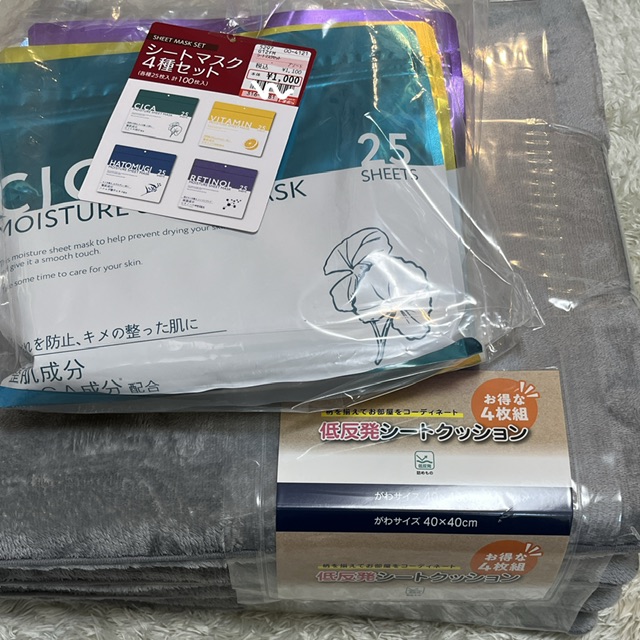 シートマスクはまだたくさん残ってたけど、これも優先順位上でした。シートクッション1つ250円(別)とか、どんだけwww