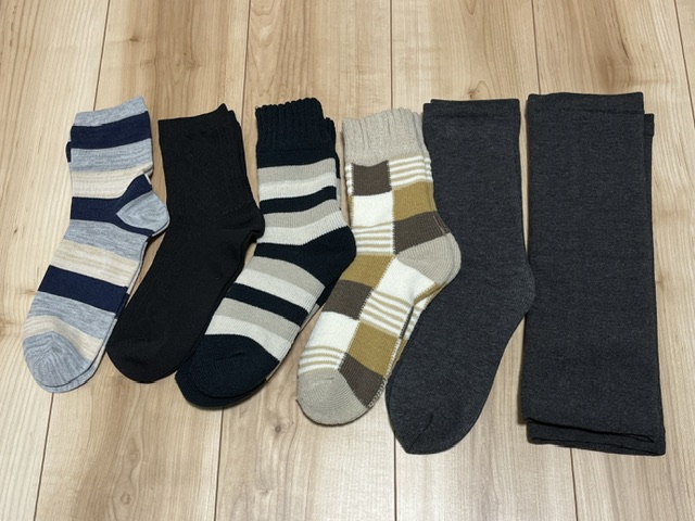 右2点は薄手、中2点は厚手、右2点は裏起毛。末端冷え性の私にはありがたいセットでした!