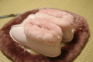 冷えは足下からといいますが、5本指靴下をはいて、その上に靴下を重ね履きをしてもなんだかまだ寒さを感じます。冷えがひどいのかしら??VISAカードのチラシに、とっても暖かそうなムートンのルームシューズが掲載されていたので、早速百貨店に行って購入しました♪このスリッパは、ジャクソンベイ社製メディカル・シープスキンスリッパで~す楽天さんでは、こちらのお店で扱っているようです【楽天市場】シープスキン室内履きスリッパ-->:欲ばり名品マーケット 足首までふかふかのムートンが包んでくれるこのルームシューズ♪ぽかぽかと、と~ても温かくて気持ちがいいです。それに驚くほど軽いんです☆羊の皮でできているので、保温性があるのにむれにくいのだとか。色がピンクでかわいいのもとっても気に入っています☆ムートンの座布団と一緒に使って、あったかく冬をすごすわよ~ 楽天でみつけたあったかルームシューズ☆ ジャクソンベイ・羊毛ルームソックス・ハイソックスタイプステッチムートンマイウーリィズ社天然ムートンシューズ 楽天でみつけたあったかルーム座布団☆ ニュームートン・ドーナツ(円座)クッションニュームートン・クッション ニュージームートンクッション