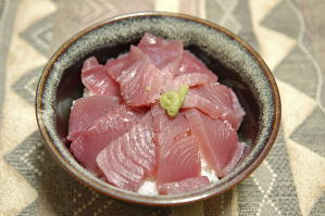 行きつけの魚屋さんで、生マグロのブロックを購入しました。生きのいいマグロ。どどーんと切って、こんもりと盛りつけて、マグロ丼にしていただきましたとろけるような、おいしさでした~。