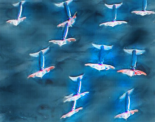 飛行するトビイカ http://research.kahaku.go.jp/zoology/kaisei/hp-7/nigeru/tobu.html≪捕食者から「逃げる」ということは武器を持たない動物にとって最も基本のひとつである.捕食者のいる海中から空中に逃げ場をみつけた代表選手がトビウオ である.しかし,所詮は魚なので良く発達した胸鰭をもっていても,鳥のように自由には飛ぶことできない.トビウオのごく短い腸は食べたものをすみやかに体 外に排出する機能をもっている.いざというとき,体を軽くしてより遠くに逃げるための工夫である.トビイカなどのイカの仲間も胴体後端についたヒレと腕で 翼をつくり空へ逃げることができる.飛距離はトビウオにはかなわず,良くても50m位である.≫(^_^;) トビイカという種類もあるように、昔からある種のイカが飛行することは知られていました。しかし、トビウオと違ってトビイカはさほど商品価値がなかったため、注目する研究者も少なく、その飛行システムに関しては謎のままでした。「飛ぶイカもいるのか、へえ~、だからどうした?」で終わってしまうのが一般的な見解でしょう。巷間の意見>>………………………………イカス! ………………………………ま っ た く ど う で も い い 話。 税 金 ド ブ 捨 て。 ………………………………つまり、イカが飛べる事がわかったという事でFA? ………………………………(T_T) ということで、こんな記事を書いたものの、どれくらいのアクセスがあるか本ブログとしてはいささか心配です。イカとかタコは人間同様ある方向では進化の頂点を極めた生物なのですが、一般的関心は低いですね。(参照)無脊椎動物では初 タコが道具を使用 驚くべきタコの知性を発見 http://blog.goo.ne.jp/warabidaniyuukoku/e/c247dff256819be13184091dc0b38891(^_^;) 本ブログもタコに関しては過去ログがあります。(参照)W杯的中率100%のタコ、ドイツ代表の準決勝敗退予想的中させる http://blog.goo.ne.jp/warabidaniyuukoku/e/e63f9e7a0279e21edf6d74c925bf2da2(^_^;) 世界的にタコが注目されたのはこの時くらいですね。世界に広まれダイオウイカ!「NHKスペシャル 世界初撮影!深海の超巨大イカ」が2月にドイツとフランスでも放送http://awabi.2ch.net/test/read.cgi/mnewsplus/1359014978/(^_^;) ダイオウイカといってもしょぼいサイズでしたが、NHKが視聴率稼ぎしたのは記憶に新しいです。イカは空を"飛ぶ"ことができる!! - イカの飛行行動を解明/北大http://anago.2ch.net/test/read.cgi/scienceplus/1360229438/-100≪北海道大学(北大)は2月7日、イカが水面から飛び出して着水するまでの一連の行動の連続撮影に成功し、その様子を解析した結果、単なる水面から飛び出 すのではなく、ジェット推進による加速と、腕とヒレを広げることにより揚力を発生させて、それをコントロールして着水する、発達した飛行行動を行っている ことを明らかにしたと発表した。イカは、外套膜に吸い込んだ水を漏斗から噴出して得る推進力(ジェット推進)で遊泳しており、捕食者などの接近を感じた際には、漏斗から水を勢いよく何度も噴出することで移動速度を上げ、その場からの逃避を図ることなどが知られている。外洋性イカの中には筋肉が発達した種類もおり、勢いよく水を噴射することで水面から飛び出すことが知られている。このような行動は世界各地で目撃されてき たが、人間には予測が難しく、意図的に見ることができないため断片的もしくは逸話的な情報という形でしか存在せず、単なる水面から飛び出しているだけなの か、それとも本当に「飛んでいる」のかは不明のままであった。観察されたイカは、アカイカ科(スルメイカの仲間)の若体(成体になる前の小型の個体)で、アカイカまたはトビイカとみられるという。大きさは全長(ヒレ の先から腕の先まで)約203~225mm(外套長122~135mm)で、撮影された連続写真を解析した結果、イカの「飛ぶ」行動は4つの段階に分類で きることが判明した。今回の結果は、複雑な行動をとることでイカが単に"水面から飛び出している"のではなく、高度に発達した飛行行動を持つことを明らかにするものと研究グ ループは説明するほか、イカの飛行は、逃避行動として頻繁に起きている可能性が高く、多くのイカが海鳥に空中で捕食されていることを示唆するものだとも説 明しており、海洋生態系の食物連鎖の理解につながるのではないかとの期待を示している。≫海を飛び出し空飛ぶイカ 撮影に成功http://www3.nhk.or.jp/news/html/20130208/k10015390251000.html(-_-) NHKが特集を組んだとしても、これでは視聴率は稼げないでしょうね。( ゚o゚) …と思っていたのは昨日だったのですが、その後テレビでも結構このニュースを取り上げて、意外な盛り上がりを見せています。これは二番煎じを狙ってNHKが特集を組みますね。巷間の意見>>………………………………ハイエルダールがコンティキ号の航海で発見したんだよなwその後写真撮影もぼちぼち行われるようになって、やっと学者さんがタッチできる所まで来たか ………………………………トビイカ(ひんがーいか)1杯http://ti-da.from-okinawa.jp/prod