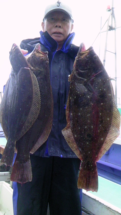 外房大原港~ ヒラメに出船しました (^^)v ポイントは大原港近く ε=┏( ・_・)┛ 水深は18m~11mを狙いました p(^^)q 潮の流れが良くて ☆彡☆彡☆彡 当たり良好 (≧▼≦) 大きさ1.5kg~2.0kgの良型のヒラメを 4枚釣り上げてくれました \(^O^)/ その他 大きさ0.6kg~1.2kgのソゲサイズを 6枚 (^^)v イナダを10匹 (≧▼≦) お客さん1枚~5枚で、全員がヒラメを釣ってくれました (^.^)b その中で 大型のバラしもありました (T_T)/~ 朝の内は、海が穏やかでしたが (^-^) 風が北東になり (;^_^A 次第に海が悪くなりましたが (・・;) 潮が良く流れて ☆彡☆彡☆彡 食いも良かったです (^_-) 出船予定です ……↓……… 10月22日の土曜日は ヒラメに出船いたします (≧▼≦) 今のところ5名のお客さんから予約を頂いております m(__)m 10月22日の土曜日の午後からは 一つテンヤのシャクリンクマダイに出船いたします p(^^)q 今のところ2名のお客さんから予約を頂いております m(__)m 10月29日の土曜日も ヒラメに出船いたします (^^)v おかげさまで満船となりました~\(^O^)/ ありがとうございます m(__)m 11月12日土曜日は オニカサゴに出船いたします (^^)v 今のところ4名のお客さんから予約を頂いております m(__)m 今後の釣り物予定です ………↓……… 10月からは ヒラメ解禁ですので メインでヒラメ その他 一つテンヤのシャクリマダイ オニカサゴ にも 出船いたします。 ご予約お待ちしております m(__)m 尚、ヒラメの乗り合いは12名までとさせていただいておりますので、ご了承ください m(__)m お知らせです ……↓…… 東日本大震災復興イベント第2弾 がんばろう いすみ 沖釣りウェスタ開催! 11月23日 祝日 水曜日 参加資格 中学生以上 釣り種目 ヒラメ 受付時間 4時半~5時 開会式 5時~5時20分 釣り時間 6時~11時半 料金 活エサ込み 11500円 参加賞 いすみ市内で使用できる振興券 3000円分 賞品等 後日、いすみ市の特産品が当たる抽選会を行います。 *抽選は後日、実行委員会において、厳正かつ公平に行い、当選は、発送をもって発表に代えさせていただきます。 お客さんへのお願いです m(__)m ………↓……… 勇盛丸では、常にお客さんの安全を考えて操業しております 【安全1番・楽しさ2番・最後に釣果はついてくる♪♪♪】《文明堂カステラのCMのパクリですが…(;^_^A》 をテーマに 命を預かる商売ですので、いつも慎重かつ冷静な操船を心がけております。 その為には、お客さんのご協力が必要不可欠ですので…… 生意気な言い方かもしれませんが 海の上では、マナーと船長の指示を必ず守って下さるよう、お願いいたします m(__)m