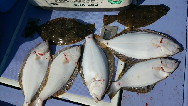 外房大原港~ヒラメに出船しました(^^)vポイントは大原港近くε=ε=(ノ≧∇≦)ノ朝の内に、ヒラメの姿を見たものの(^^ゞその後当たりが無くなり(・・;)色々場所を移動するもε=ε=┏(・_・)┛当たらなく(((・・;)苦戦(>_<)潮の流れが良くなり( ☆∀☆)バタバタと釣れ始め\(^-^)/時間までに大きさ0.4kg~1.3kgのヒラメを3枚~7枚d=(^o^)=b水温も下がり始め(^^)vイワシの気配あり(^^)d今後 渡りビラメが期待出来ますねp(^^)q出船予定です………………↓……………12月1日の木曜日はおかげさまで満船となりました~\(^-^)/ありがとうございますm(._.)m12月3日の土曜日はヒラメ&マハタに出船いたします(^^)v今のところ2名のお客さんから予約を頂いておりますm(._.)m12月4日の日曜日はヒラメ&マハタに出船いたします(^^)v今のところ3名のお客さんから予約を頂いておりますm(._.)m前半マハタ 後半ヒラメを狙いますイワシ群れ入り大型期待12月6日の火曜日はマハタに出船いたしますd=(^o^)=b今のところ3名のお客さんから予約を頂いておりますm(._.)m12月10日の土曜日はマハタ&ヒラメに出船いたします(^^)v今のところ1名のお客さんから予約を頂いておりますm(._.)mその他の日はまだ予約が入っておりませんので(^_^;)出船日も含めて、お問い合わせをお待ちしておりますm(._.)mイベントのお知らせです………↓………第2回 沖釣りフェスタ開催\(^-^)/1月8日 (日曜日) 詳細は後日掲載いたします(^^ゞお問い合わせをお待ちしておりますm(._.)mお知らせです………↓………12月1日~投入時間が6時になります(^^ゞ集合時間は5時にてお願いしますm(._.)m探見丸 スマホ対応アンテナ搭載しましたシマノ探見丸 スマートフォンで見る事が出来ます無料アプリ配信中です(^^)v勇盛丸では、ヒラメヒラメ&マハタに出船いたしますd=(^o^)=bまた希望によりオニカサゴのリレー釣り一つテンヤマダイのリレー釣りなどの企画もいたします(^^)v勇盛丸は、ジギング専門ではないのですが(;^_^Aジギングも乗り合いで楽しんでもらえたら、嬉しいですね(^^)bその他、お問い合わせは090 2932 35750470 62 2086までお願いいたしますm(._.)m大原港の優漁船の休日は、第一・第三の月曜日です(^_^)y-゜゜゜゜゜お客さんへのお願いです……↓……勇盛丸では、常にお客さんの安全を考えて操業しております【安全1番・楽しさ2番・最後に釣果はついてくる♪♪♪】《文明堂カステラcmのパクりですが………(^-^ゞ》をテーマに命を預かる商売ですので、いつも慎重かつ冷静な操船を心掛けておりますその為には、お客さんのご協力が不可欠ですので生意気な言い方かもしれませんが海の上では、マナーと船長の指示を必ず守ってくださるよう、お願いいたします