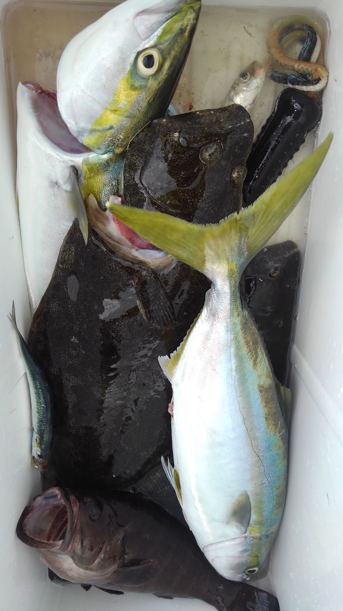 外房大原港~ヒラメ&マハタ予定でしたが(・・;)北東風強く、ウネリあったので(>_<)灘のヒラメに出船しました(^^)vポイントは太東灯台近くε=ε=(ノ≧∇≦)ノ水深は15m前後を狙いましたp(^-^)q当たりよくd=(^o^)=b噛られや、バラシも多く(/_;)/~~時間までにヒラメ1枚~6枚(^^)dその他、イナダも釣れました(^^ゞ 出船予定です………↓………10月10日の水曜日は一つテンヤマダイに出船いたします(^^)v今のところ2名のお客さんから予約を頂いておりますm(._.)m10月12日の金曜日はヒラメ&ハタに出船いたしますd=(^o^)=b今のところ2名のお客さんから予約を頂いておりますm(._.)m10月13日の土曜日はヒラメ&マハタに出船いたします(^^)v今のところ1名のお客さんから予約を頂いておりますm(._.)m10月14日の日曜日は深場のヒラメに出船いたします(^^)v乗船のお客さんを募集中ですm(._.)m今後の釣り物です…………↓…………ヒラメ・マハタ解禁\(^-^)/鬼カサゴ (初心者も安心 電動貸し道具あり) メヌケ (夢ではない提灯行列)激流だった潮が落ち着いたのでチャンスです一つテンヤマダイ (テンヤ カブラ タイラバゲーム) お知らせです…………↓………探見丸 スマホ対応アンテナ搭載しておりますシマノ探見丸 スマートフォンで見る事が出来ます無料アプリ配信中です(^^)v勇盛丸は、ジギング専門ではないのですが(;^_^Aジギングも乗り合いで楽しんでもらえたら、嬉しいですね(^^)bその他、お問い合わせは090 2932 35750470 62 2086までお願いいたしますm(._.)m大原港の優漁船の休日は、第一・第三の月曜日です(^_^)y-゜゜゜゜゜お客さんへのお願いです……↓……勇盛丸では、常にお客さんの安全を考えて操業しております【安全1番・楽しさ2番・最後に釣果はついてくる♪♪♪】《文明堂カステラcmのパクりですが………(^-^ゞ》をテーマに命を預かる商売ですので、いつも慎重かつ冷静な操船を心掛けておりますその為には、お客さんのご協力が不可欠ですので生意気な言い方かもしれませんが海の上では、マナーと船長の指示を必ず守ってくださるよう、お願いいたします