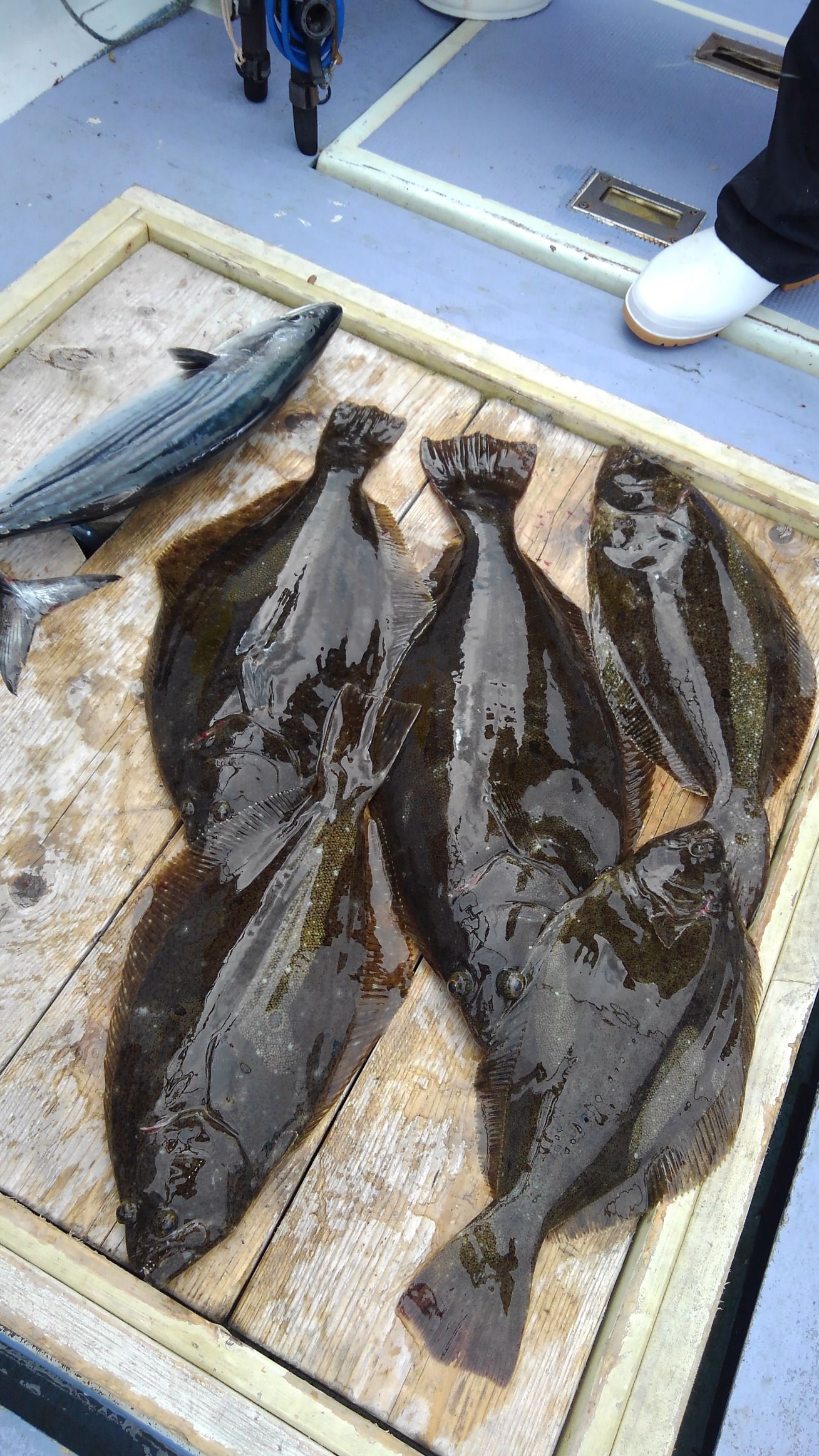 外房大原港~深場のヒラメ&マハタに出船しました(^^)v北風が強く(((((((・・;)海はコチャコチャしてましたが(・・;)大原沖、水深60mを狙いましたp(^^)q朝の内は、バラシが多くて(/_;)/~~それでも、ソゲクラスがポツポツと当たりました(^^ゞ場所を移動して ε=ε=(ノ≧∇≦)ノ次の場所の水深60mでヒラメの食いが良くてd=(^o^)=bヒラメサイズ~大型ヒラメ4.8kg\(^^)/マハタは当たらなかったのですが・・・(((^^;)その後もヒラメは好調d=(^o^)=b時間までに0.6kg~4.8kgのヒラメを2枚~9枚(^^)vその他 カサゴ ハガツオ ソウダカツオも釣れました(^^ゞ明日も深場予定現在2名出船予定です………↓………明日・10月21日の日曜日も深場のヒラメ&マハタに出船いたしますd=(^o^)=b今のところ2名のお客さんから予約を頂いておりますm(._.)mご予約お待ちしております🙏今後の釣り物です…………↓…………ヒラメ&マハタ解禁\(^-^)/鬼カサゴ (初心者も安心 電動貸し道具あり) メヌケ (夢ではない提灯行列)激流だった潮が落ち着いたのでチャンスです一つテンヤマダイ (テンヤ カブラ タイラバゲーム) お知らせです…………↓………探見丸 スマホ対応アンテナ搭載しておりますシマノ探見丸 スマートフォンで見る事が出来ます無料アプリ配信中です(^^)v勇盛丸は、ジギング専門ではないのですが(;^_^Aジギングも乗り合いで楽しんでもらえたら、嬉しいですね(^^)bその他、お問い合わせは090 2932 35750470 62 2086までお願いいたしますm(._.)m大原港の優漁船の休日は、第一・第三の月曜日です(^_^)y-゜゜゜゜゜お客さんへのお願いです……↓……勇盛丸では、常にお客さんの安全を考えて操業しております【安全1番・楽しさ2番・最後に釣果はついてくる♪♪♪】《文明堂カステラcmのパクりですが………(^-^ゞ》をテーマに命を預かる商売ですので、いつも慎重かつ冷静な操船を心掛けておりますその為には、お客さんのご協力が不可欠ですので生意気な言い方かもしれませんが海の上では、マナーと船長の指示を必ず守ってくださるよう、お願いいたします