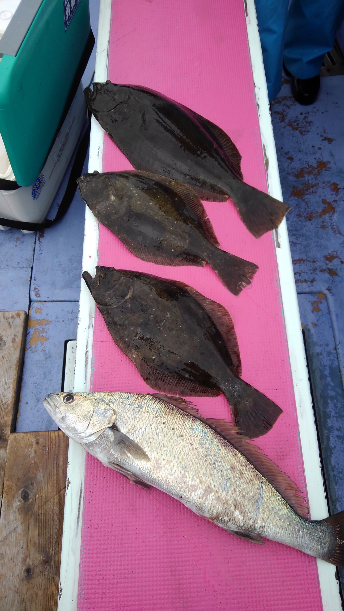 外房大原港~深場のヒラメ&ハタに出船しました(^^)v北風強く(((^^;)ウネリもあり(((((((・・;)大原沖、水深50mで開始しましたp(^^)q当たりなく(・・;)移動 ε=ε=(ノ≧∇≦)ノトリプルヒット\(^^)/が (・・;)後が続かなく苦戦(>_<)時間までにヒラメ 0.5kg~2.3kgを0枚~3枚(^^ゞハタ 小ハタ~1.0kg・船中3匹 その他、キントキも釣れました(^^ゞ出船予定です………↓………明日・10月22日の月曜日はヒラメに出船いたしますd=(^o^)=b今のところ2名のお客さんから予約を頂いておりますm(._.)m10月24日の水曜日は深場のヒラメ&マハタに出船いたしますd=(^o^)=b今のところ2名のお客さんから予約を頂いておりますm(._.)mご予約お待ちしております🙏今後の釣り物です…………↓…………ヒラメ&マハタ解禁\(^-^)/鬼カサゴ (初心者も安心 電動貸し道具あり) メヌケ (夢ではない提灯行列)激流だった潮が落ち着いたのでチャンスです一つテンヤマダイ (テンヤ カブラ タイラバゲーム) お知らせです…………↓………探見丸 スマホ対応アンテナ搭載しておりますシマノ探見丸 スマートフォンで見る事が出来ます無料アプリ配信中です(^^)v勇盛丸は、ジギング専門ではないのですが(;^_^Aジギングも乗り合いで楽しんでもらえたら、嬉しいですね(^^)bその他、お問い合わせは090 2932 35750470 62 2086までお願いいたしますm(._.)m大原港の優漁船の休日は、第一・第三の月曜日です(^_^)y-゜゜゜゜゜お客さんへのお願いです……↓……勇盛丸では、常にお客さんの安全を考えて操業しております【安全1番・楽しさ2番・最後に釣果はついてくる♪♪♪】《文明堂カステラcmのパクりですが………(^-^ゞ》をテーマに命を預かる商売ですので、いつも慎重かつ冷静な操船を心掛けておりますその為には、お客さんのご協力が不可欠ですので生意気な言い方かもしれませんが海の上では、マナーと船長の指示を必ず守ってくださるよう、お願いいたします