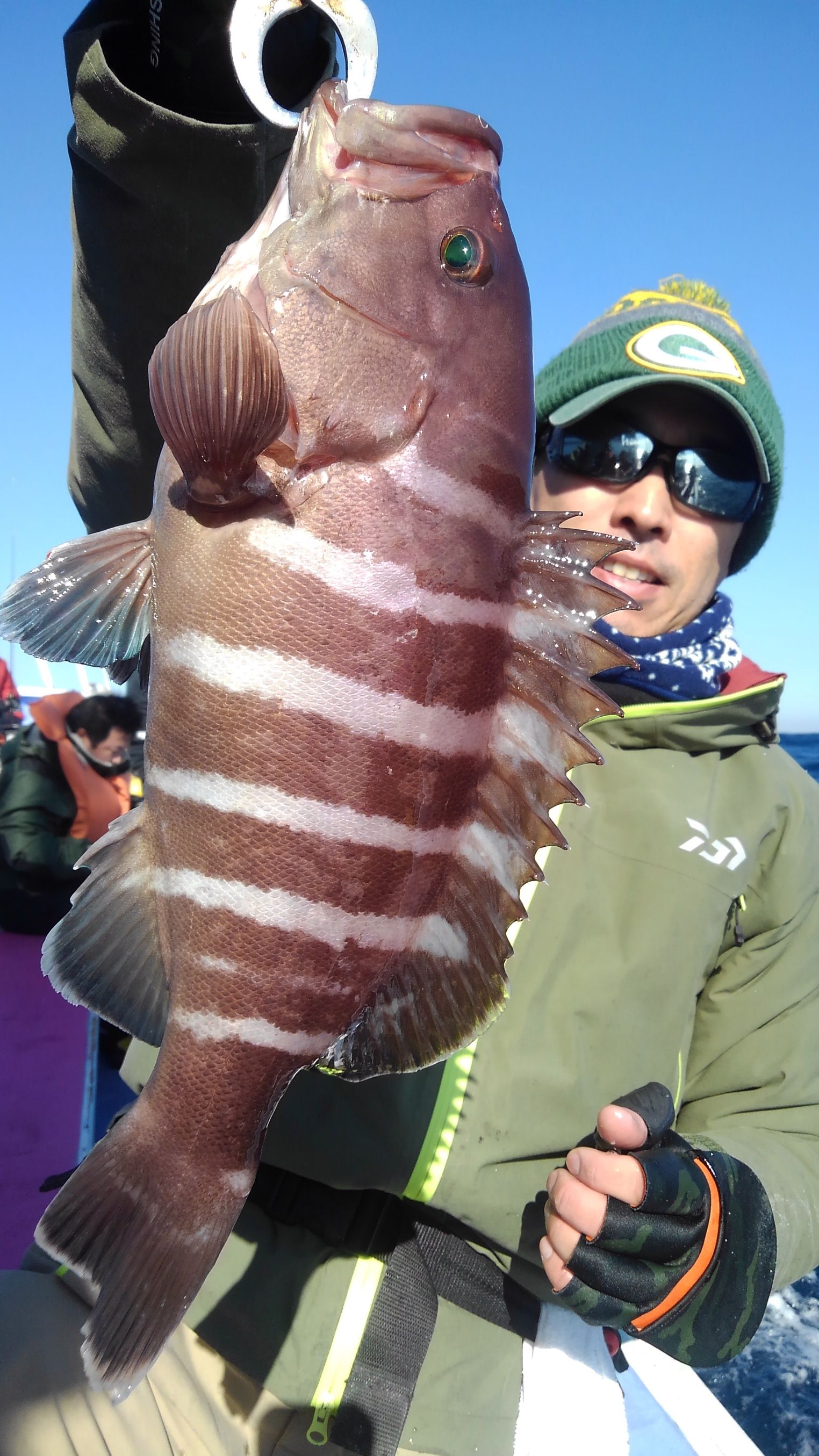 外房大原港~マハタに出船しました(^^)vポイントは太東沖ε=ε=(ノ≧∇≦)ノ水深は40m前後を狙いましたp(^-^)q場所に着くと北西風が強かったのですが☆≡(>。<)海は平らだったので開始p(^^)q小サイズの~1.2kgのマハタを2匹~5匹d=(^o^)=bその他、キントキも釣れました(^^ゞ10時前に北風になり、ウネリが出てきたので(・・;)灘のヒラメに切り替えε=ε=┏(・_・)┛ソゲの型を見て終了となりました(/_;)/~~出船予定です……⬇️……明日・1月27日の日曜日はヒラメに出船いたします(^^)v今のところ4名のお客さんから予約を頂いておりますm(._.)m1月30日の水曜日はマハタに出船いたします(^^)v今のところ3名のお客さんから予約を頂いておりますm(._.)m2月2日の土曜日は鬼カサゴに出船いたします(^^)v今のところ2名のお客さんから予約を頂いておりますm(._.)m2月3日の日曜日はヤリイカに出船いたします(^^)v今のところ5名のお客さんから予約を頂いておりますm(._.)m2月5日の火曜日はマハタ&ヒラメに出船いたしますd=(^o^)=b今のところ3名のお客さんから予約を頂いておりますm(._.)mご予約お待ちしておりますイベントのお知らせです………⬇️………3月3日・ヒラメ釣り大会d=(^o^)=b勇盛丸では定員14名を募集させていただきましたところおかげさまで満船となりました~\(^^)/ありがとうございますm(._.)m今後の釣り物です…………↓…………ヒラメ&マハタ\(^-^)/鬼カサゴ (初心者も安心 電動貸し道具あり) メヌケ (夢ではない提灯行列)激流だった潮が落ち着いたのでチャンスです一つテンヤマダイ (テンヤ カブラ タイラバゲーム) お知らせです…………↓………探見丸 スマホ対応アンテナ搭載しておりますシマノ探見丸 スマートフォンで見る事が出来ます無料アプリ配信中です(^^)v勇盛丸は、ジギング専門ではないのですが(;^_^Aジギングも乗り合いで楽しんでもらえたら、嬉しいですね(^^)bその他、お問い合わせは090 2932 35750470 62 2086までお願いいたしますm(._.)m大原港の優漁船の休日は、第一・第三の月曜日です(^_^)y-゜゜゜゜゜お客さんへのお願いです……↓……勇盛丸では、常にお客さんの安全を考えて操業しております【安全1番・楽しさ2番・最後に釣果はついてくる♪♪♪】《文明堂カステラcmのパクりですが………(^-^ゞ》をテーマに命を預かる商売ですので、いつも慎重かつ冷静な操船を心掛けておりますその為には、お客さんのご協力が不可欠ですので生意気な言い方かもしれませんが海の上では、マナーと船長の指示を必ず守ってくださるよう、お願いいたします