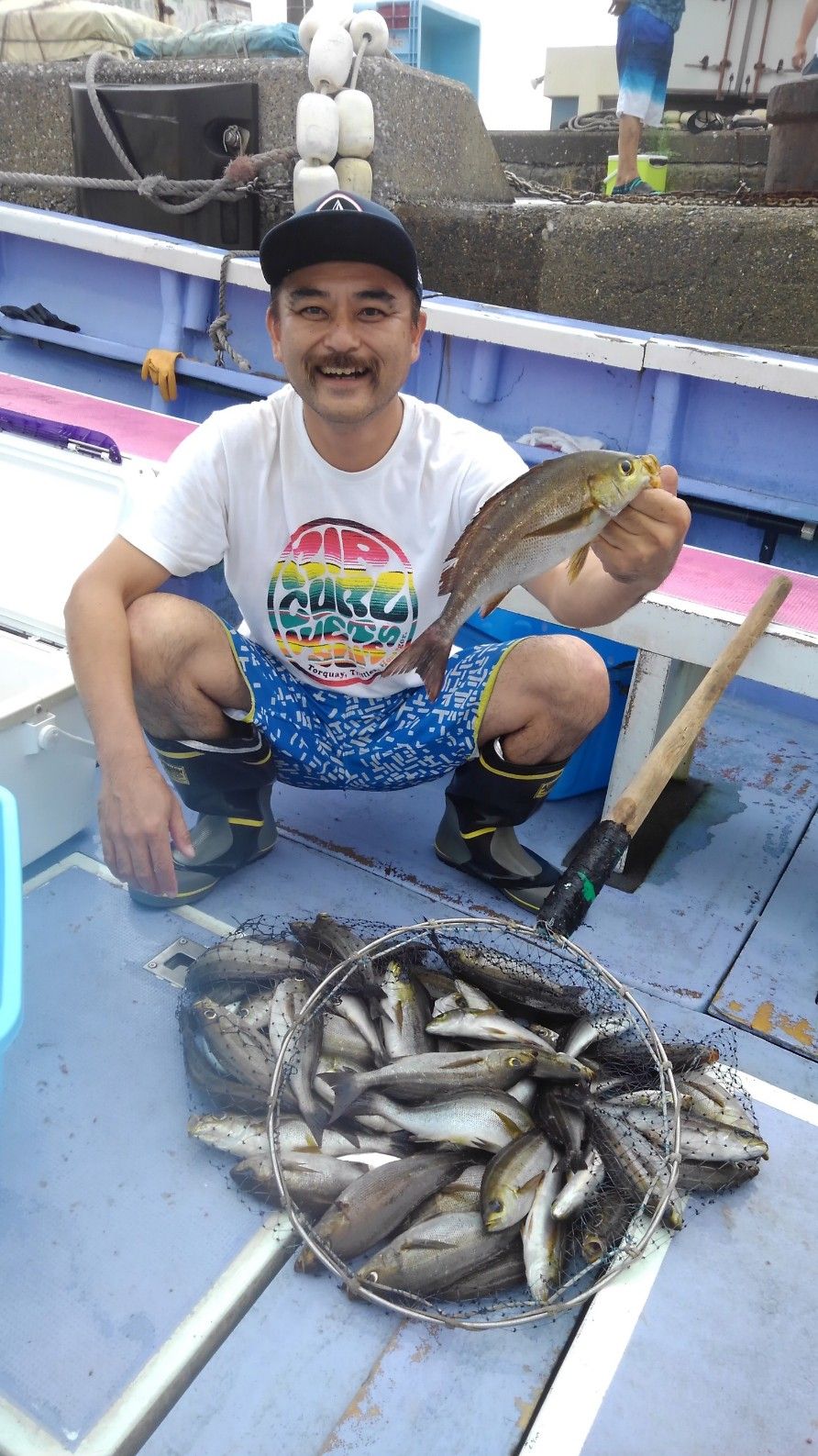 外房大原港~Lightタックル・イサキに出船しました✌️ポイントは大原沖🛥️水深は30mを狙いました👊朝一に行った、連日好調のポイントは潮が速く😵移動!🚢1時間遅れにて開始p(^^)qポツポツとイサキが釣れてたまに、腹パンのイサキが混じりました😉が…………次第に食いが渋くなり😣お客さんから腹パンのイサキを狙いたいと言う希望もあったので😆再び朝一のポイントへ🛥️場所に着くと、潮はピタッと止まり👍9時過ぎ開始👊腹パンイサキがダブル・トリプルの入れ食い状態に😉時間までに、中型~腹パンイサキを34匹~定量50匹\(^^)/連日定量継続中です✌️出船予定です………↓………7月23日の火曜日はLightタックル・イサキに出船いたしますd=(^o^)=b今のところ4名のお客さんから予約を頂いておりますm(._.)mその他、随時乗船のお客さんを募集中ですm(._.)mイベントのお知らせです…………↓………8月18日・日曜日マダイ釣り大会開催\(^^)/勇盛丸では14名を募集させて頂きました今のところ8名のエントリーを受付しましたp(^^)qお問い合わせをお待ちしておりますm(._.)m今後の釣り物です…………↓…………Light・タックルイサキ(^^)v鬼カサゴ (初心者も安心 電動貸し道具あり) メヌケ (夢ではない提灯行列)激流だった潮が落ち着いたのでチャンスです一つテンヤマダイ (テンヤ カブラ タイラバゲーム) お知らせです…………↓………4月1日から投入時間が5時となりました沖上がりは11時となります。集合時間は4時10分でお願いいたしますm(._.)m探見丸 スマホ対応アンテナ搭載しておりますシマノ探見丸 スマートフォンで見る事が出来ます無料アプリ配信中です(^^)v勇盛丸は、ジギング専門ではないのですが(;^_^Aジギングも乗り合いで楽しんでもらえたら、嬉しいですね(^^)bその他、お問い合わせは亘船長090 2932 35750470 62 2086までお願いしますm(._.)m大原港の優漁船の休日は、第一・第三の月曜日です(^_^)y-゜゜゜゜゜お客さんへのお願いです……↓……勇盛丸では、常にお客さんの安全を考えて操業しております【安全1番・楽しさ2番・最後に釣果はついてくる♪♪♪】《文明堂カステラcmのパクりですが………(^-^ゞ》をテーマに命を預かる商売ですので、いつも慎重かつ冷静な操船を心掛けておりますその為には、お客さんのご協力が不可欠ですので生意気な言い方かもしれませんが海の上では、マナーと船長の指示を必ず守ってくださるよう、お願いいたします