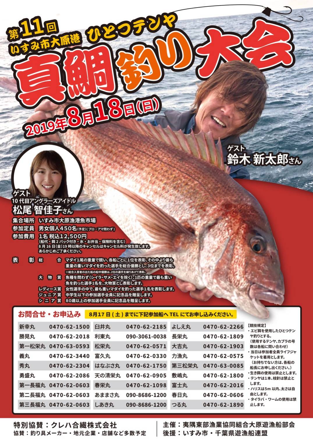 外房大原港~上州屋マダイ釣り大会の予定でしたが悪天候の為、中止となりました(>_<)エントリーされたお客さんには大変申し訳思っておりますm(._.)m次回のマダイ大会は8月18日の日曜日ですp(^^)q出船予定です………↓………7月11日の木曜日はLightタックル・イサキに出船いたします(^^)v今のところ2名のお客さんから予約を頂いておりますm(._.)m7月14日の日曜日はスルメイカ&鬼カサゴに出船いたします(^^)v今のところ3名のお客さんから予約を頂いておりますm(._.)mその他、随時乗船のお客さんを募集中ですm(._.)mイベントのお知らせです…………↓………8月18日・日曜日マダイ釣り大会開催\(^^)/勇盛丸では14名を募集させて頂きました今のところ5名のエントリーを受付しましたp(^^)qお問い合わせをお待ちしておりますm(._.)m今後の釣り物です…………↓…………Light・タックルイサキ(^^)v鬼カサゴ (初心者も安心 電動貸し道具あり) メヌケ (夢ではない提灯行列)激流だった潮が落ち着いたのでチャンスです一つテンヤマダイ (テンヤ カブラ タイラバゲーム) お知らせです…………↓………4月1日から投入時間が5時となりました沖上がりは11時となります。集合時間は4時10分でお願いいたしますm(._.)m探見丸 スマホ対応アンテナ搭載しておりますシマノ探見丸 スマートフォンで見る事が出来ます無料アプリ配信中です(^^)v勇盛丸は、ジギング専門ではないのですが(;^_^Aジギングも乗り合いで楽しんでもらえたら、嬉しいですね(^^)bその他、お問い合わせは亘船長090 2932 35750470 62 2086までお願いしますm(._.)m大原港の優漁船の休日は、第一・第三の月曜日です(^_^)y-゜゜゜゜゜お客さんへのお願いです……↓……勇盛丸では、常にお客さんの安全を考えて操業しております【安全1番・楽しさ2番・最後に釣果はついてくる♪♪♪】《文明堂カステラcmのパクりですが………(^-^ゞ》をテーマに命を預かる商売ですので、いつも慎重かつ冷静な操船を心掛けておりますその為には、お客さんのご協力が不可欠ですので生意気な言い方かもしれませんが海の上では、マナーと船長の指示を必ず守ってくださるよう、お願いいたします
