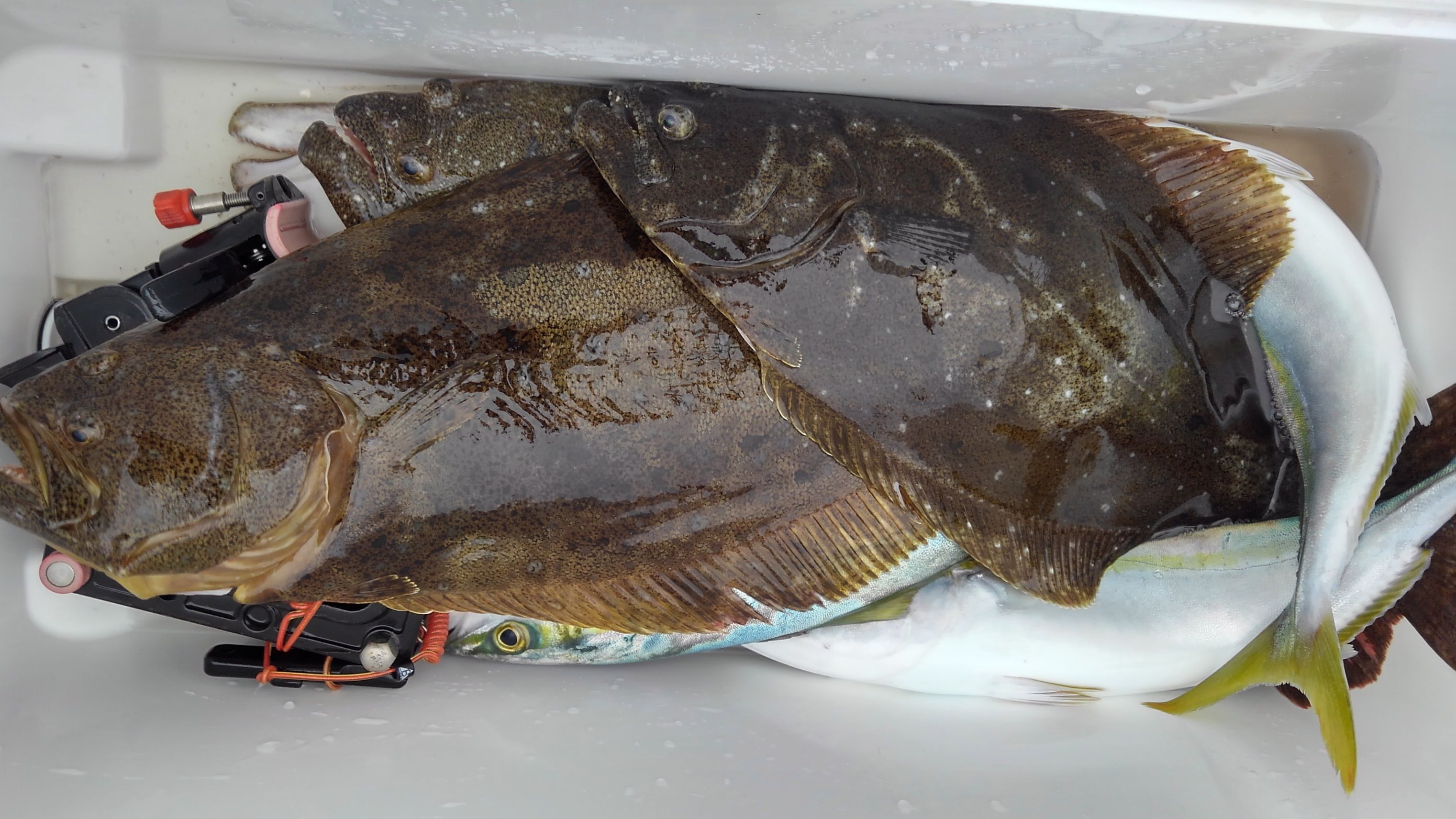 外房大原港~マハタ&ヒラメに出船予定でしたが😉予報と違い北東の風😣雨で海悪く😢ヒラメに変更しました😌ポイントは太東灯台近く🛥️水深は20m前後を狙いました😉流れ良く😊ヒラメもポツポツあたりました😆ヒラメ トップ4枚×2名 最大1.8kg✌️他にワカシとイナダも多数釣れました😄出船予定です…………↓…………明日・12月22日の日曜日はキントキ五目&スルメ鬼カサゴに出船いたします✌️今のところ4名のお客さんから予約を頂いておりますm(._.)m12月24日の火曜日はヒラメに出船いたします✌️今のところ3名のお客さんから予約を頂いておりますm(._.)m12月28日の土曜日は午前中、ヒラメに出船いたします✌️おかげさまで満船になりました~\(^^)/ありがとうございます😌午後からはマダイに出船いたします👊今のところ2名のお客さんから予約を頂いておりますm(._.)m12月29日の日曜日は午前中おかげさまで満船となりました~\(^^)/ありがとうございますm(._.)m午後からはマダイに出船いたします✌️乗船のお客さんを募集中ですm(._.)m12月30日の月曜日は午前中おかげさまで満船となりました~\(^^)/ありがとうございますm(._.)m午後からはマダイに出船いたします👍乗船のお客さんを募集中ですm(._.)m2020年 初出船は1月4日の土曜日朝7時出船と決まりました😉また、新春沖釣りフェスタ1月12日の日曜日に開催👍ご予約お待ちしておりますm(._.)m今後の釣り物です…………↓…………全区間で解禁となったヒラメ&マハタ✌️鬼カサゴ (初心者も安心 電動貸し道具あり) メヌケ (夢ではない提灯行列)激流だった潮が落ち着いたのでチャンスです一つテンヤマダイ (テンヤ カブラ タイラバゲーム) お知らせです…………↓………12月からは集合時間が4時50分投入時間が6時となりました😌探見丸 スマホ対応アンテナ搭載しておりますシマノ探見丸 スマートフォンで見る事が出来ます無料アプリ配信中です(^^)v勇盛丸は、ジギング専門ではないのですが(;^_^Aジギングも乗り合いで楽しんでもらえたら、嬉しいですね(^^)bその他、お問い合わせは亘船長090 2932 35750470 62 2086までお願いしますm(._.)m大原港の優漁船の休日は、第一・第三の月曜日です(^_^)y-゜゜゜゜゜お客さんへのお願いです……↓……勇盛丸では、常にお客さんの安全を考えて操業しております【安全1番・楽しさ2番・最後に釣果はついてくる♪♪♪】《文明堂カステラcmのパクりですが………(^-^ゞ》をテーマに命を預かる商売ですので、いつも慎重かつ冷静な操船を心掛けておりますその為には、お客さんのご協力が不可欠ですので生意気な言い方かもしれませんが海の上では、マナーと船長の指示を必ず守ってくださるよう、お願いいたします